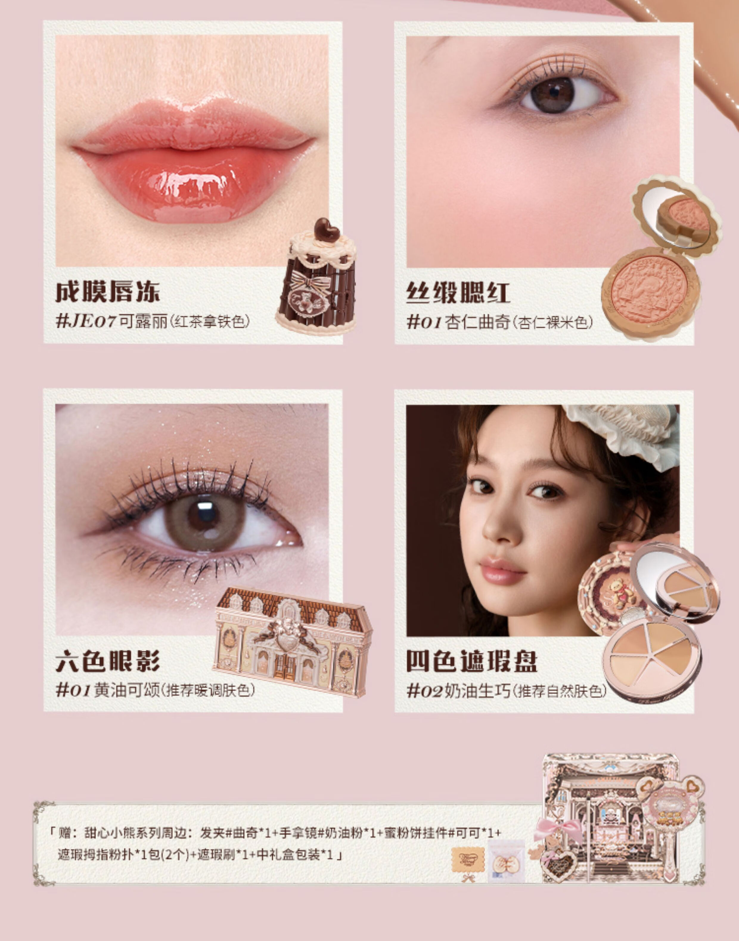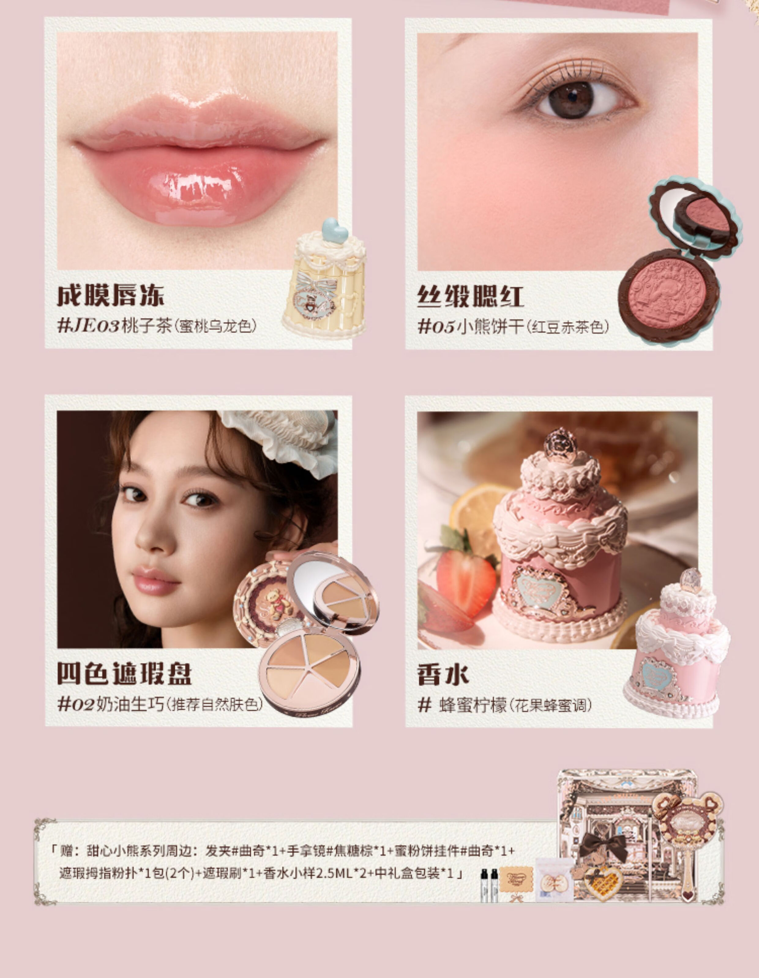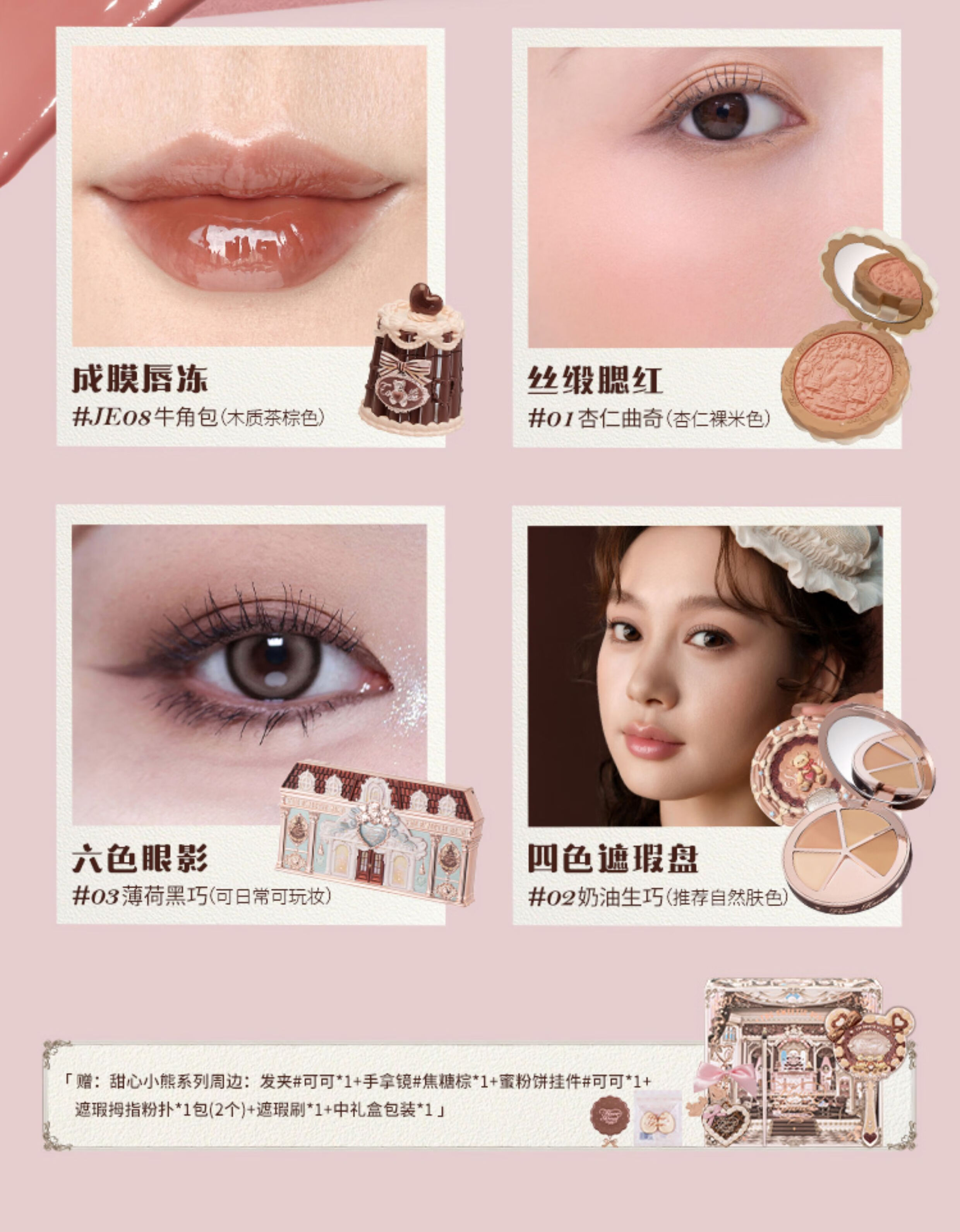 Flowers know that new products are on sale, sweet bear cookie gift box, cosmetics set, lip jelly, eye shadow, blush, concealer palette, perfume complete set, butter bread 1 piece
