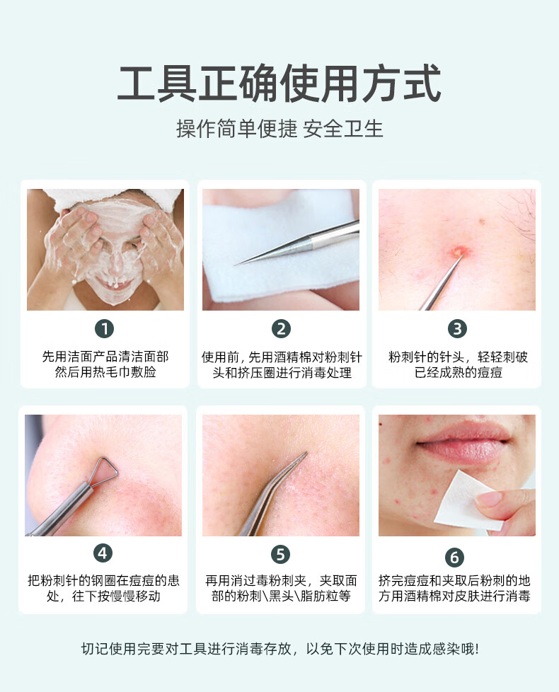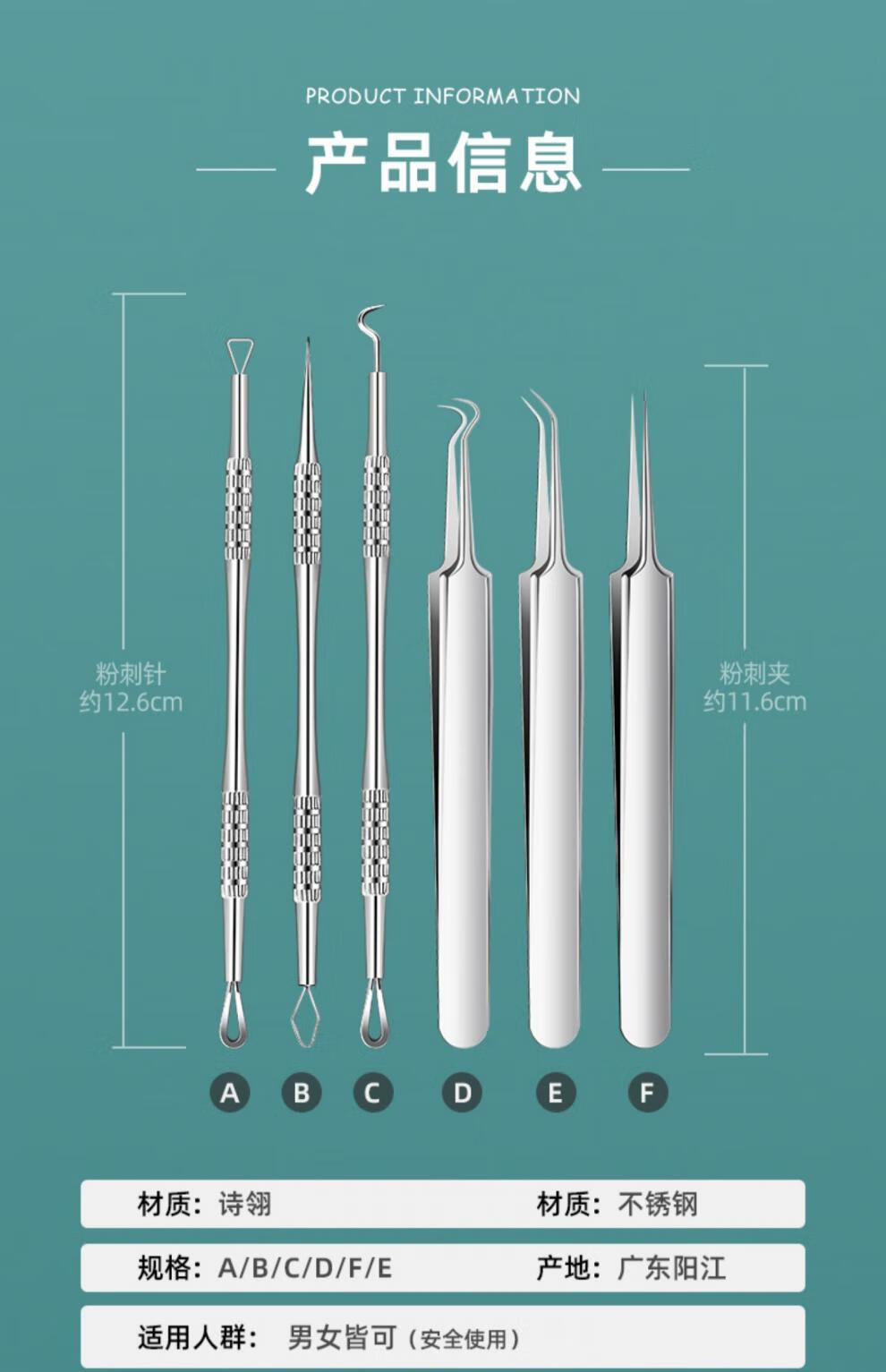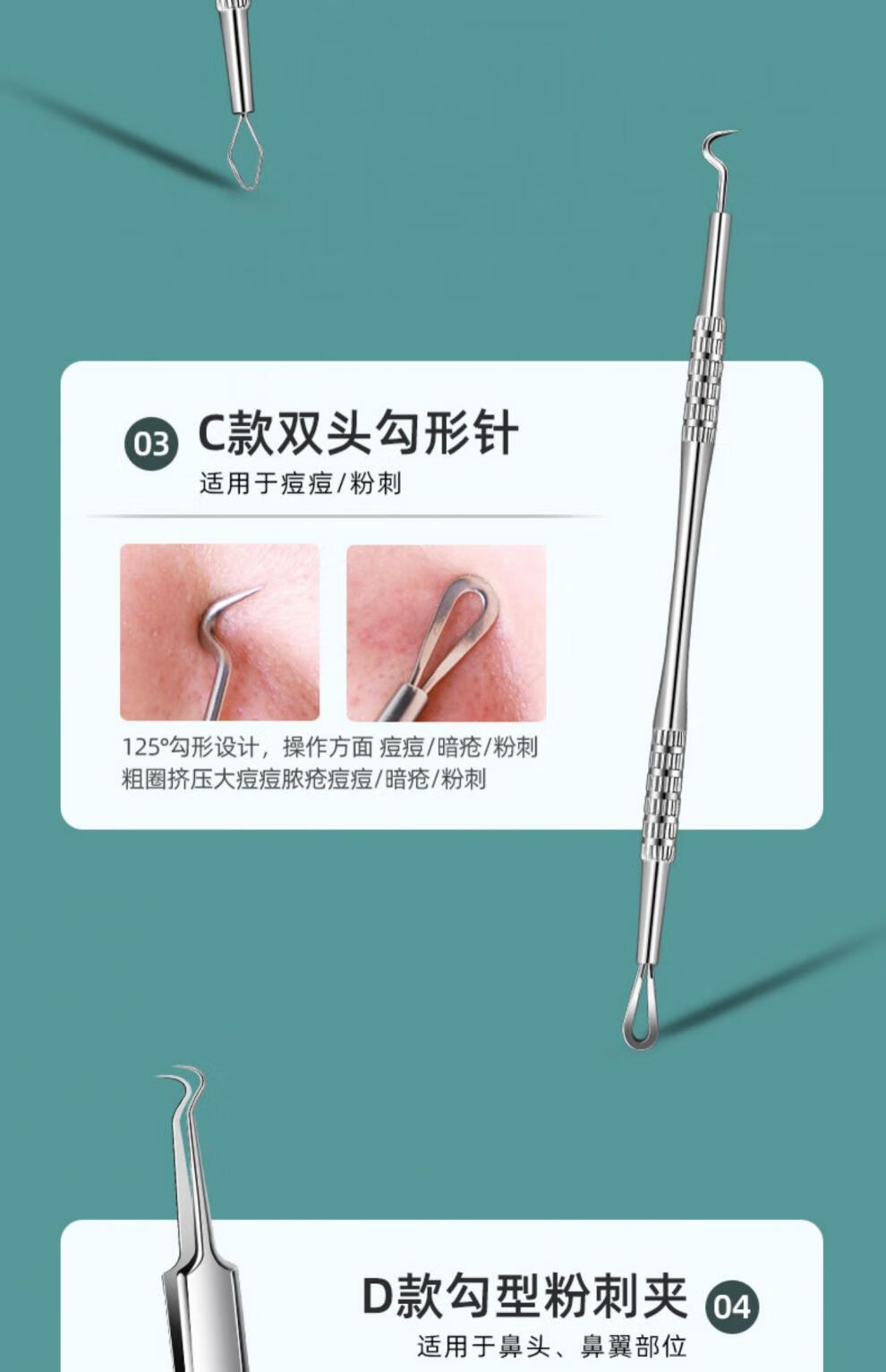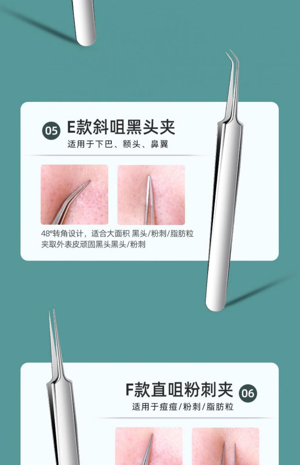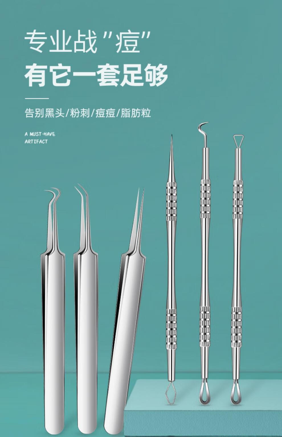 Shiling Beauty Salon Anti-dark Acne Needle Remove Blackhead Closed Clamp Tweezers Acne Squeezing Tool Set Full-Functional Set Beauty Salon 6 Pieces
