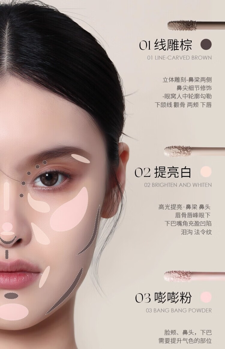 CHENGYUXIN (CHENGYUXIN) 1 shot 9 is equal to CHENGYUXIN Small Square Double-ended Liquid Contour Stick Highlight Shadow Brightening Novice Pack E02 Tip + Thumb Powder Puff*1 1 piece