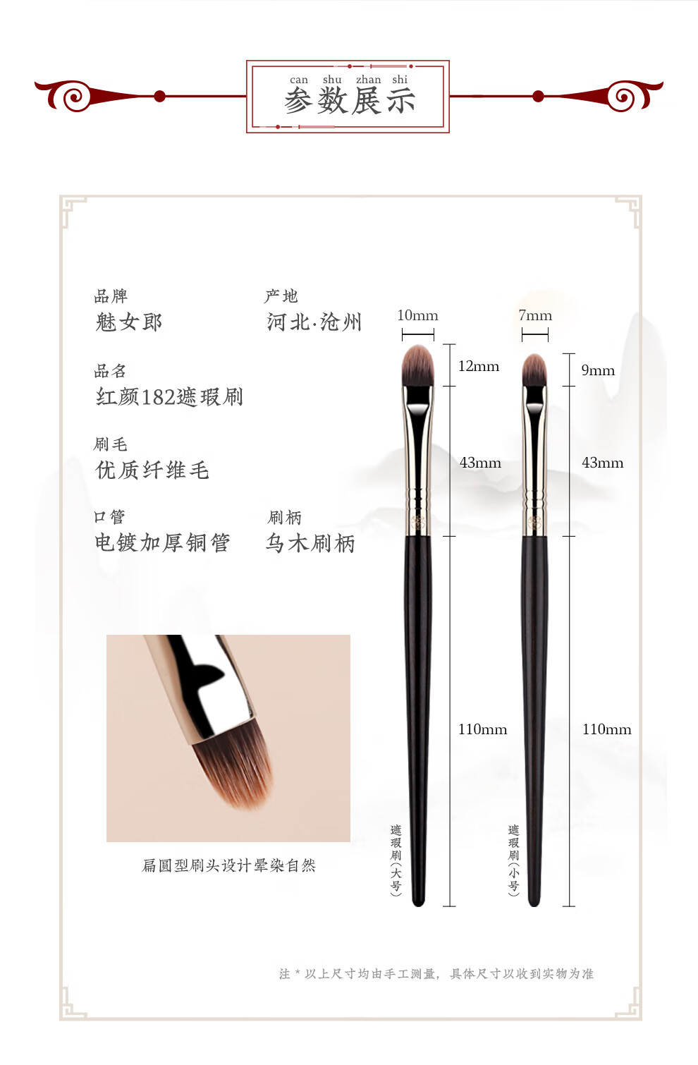 Meimei Hongyan 182 small concealer brush with flat head to cover nasolabial folds, tear trough detail brush, 3 pieces, Hongyan 182 concealer brush, large and small combination pack