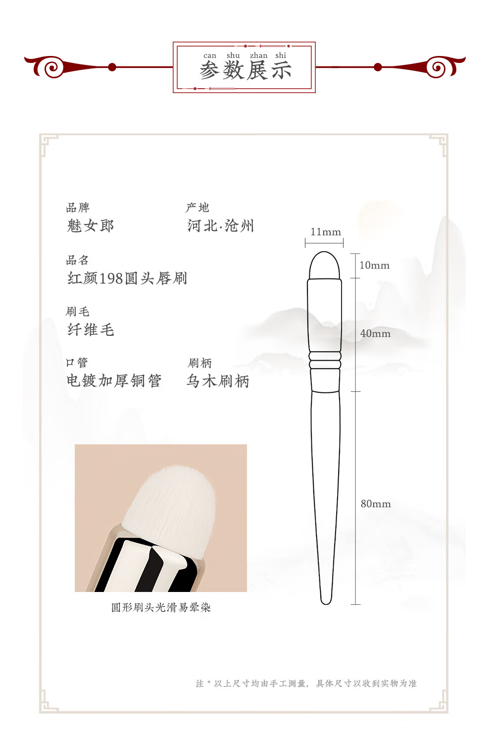 Mei Girl Hongyan 198-head lip brush blending brush round-head lipstick brush makeup artist portable makeup brush 2 pieces Hongyan 198-head lip brush (package)