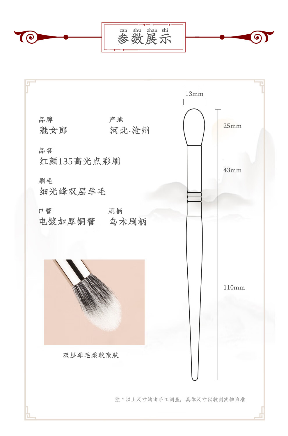 Charming Girl Beauty 135 Highlight Spot Paint Brush Double Layer Fine Edge Wool Round Head Flame Blush Brush 1 Stick Beauty 135 Highlight Spot Paint Brush Wool