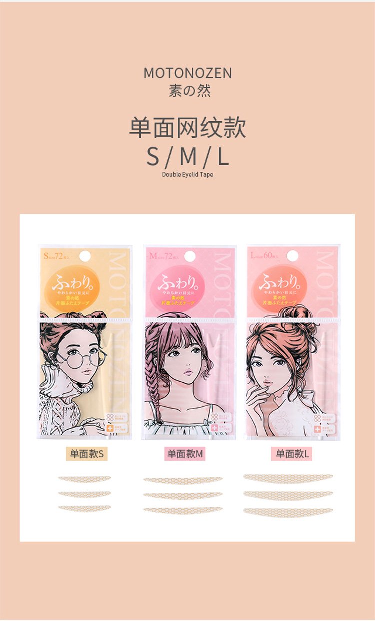 MOTONOZEN Suzhiran Double Eyelid Sticker Invisible Lace Skin Color Natural and Traceless Men's and Women's Eyes Single Side M/72 Pieces