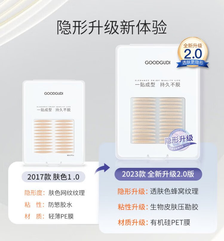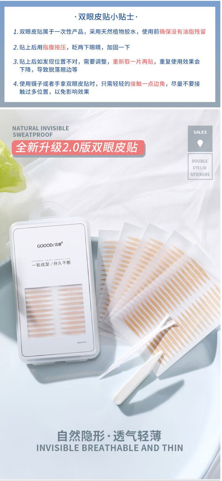 Gudi 1200 olive-shaped double eyelid stickers for women, invisible, traceless, natural, men's swollen eyes, specially designed for double eyelids