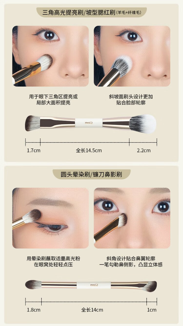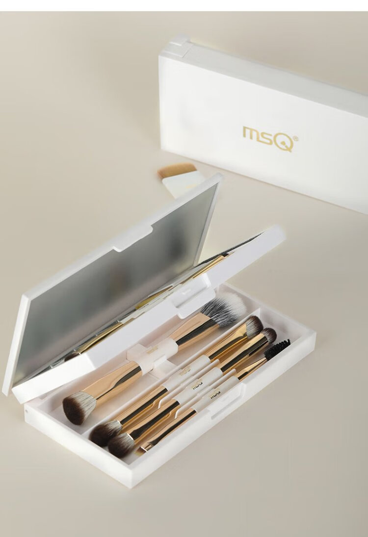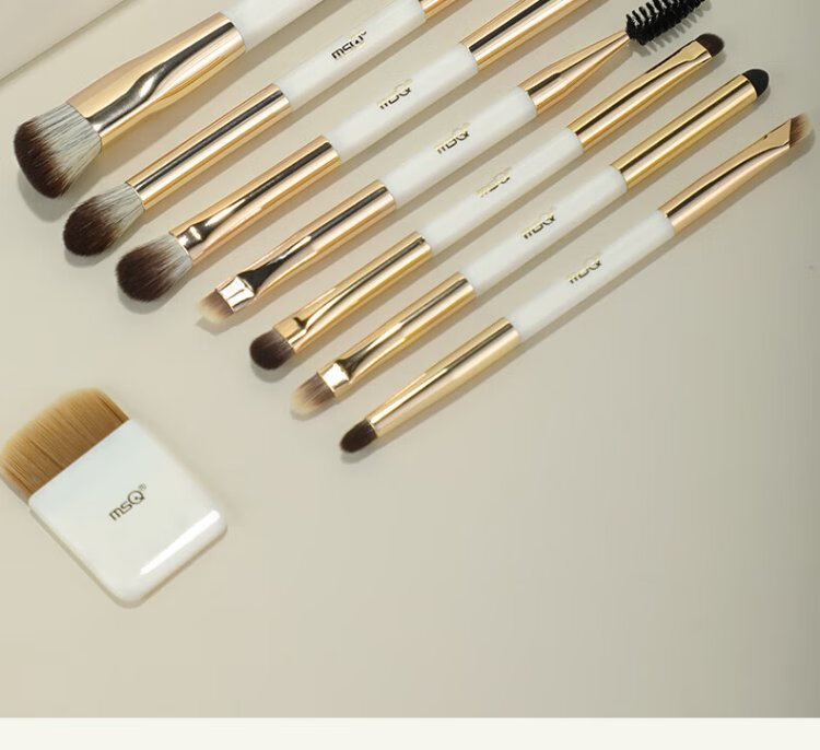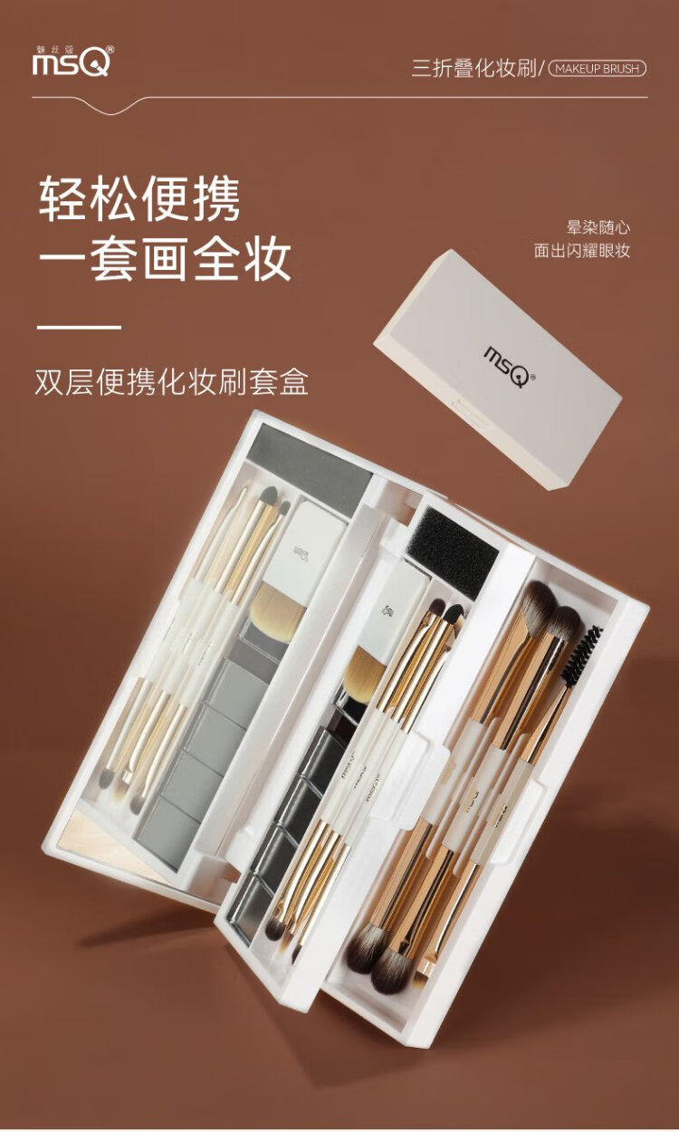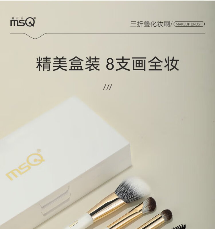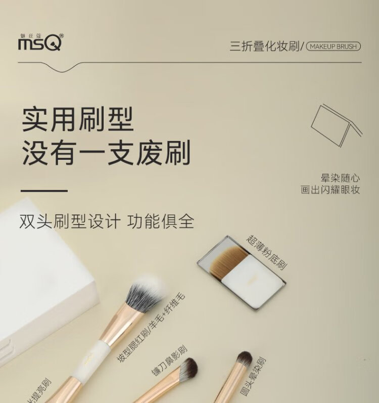MSQ 8 double-headed makeup brushes, three-fold portable set, blush brush, foundation brush, eye shadow brush, concealer brush, beauty tool