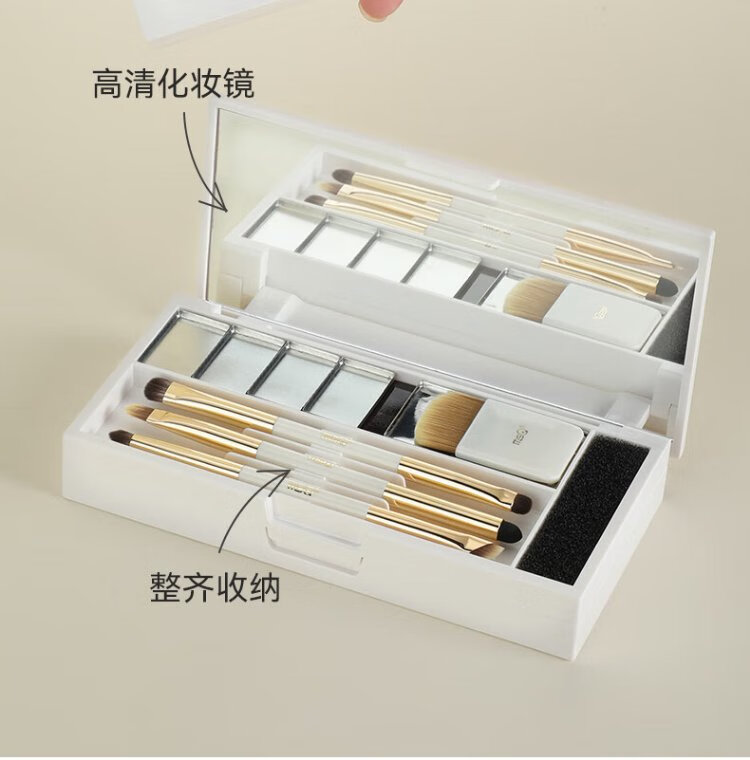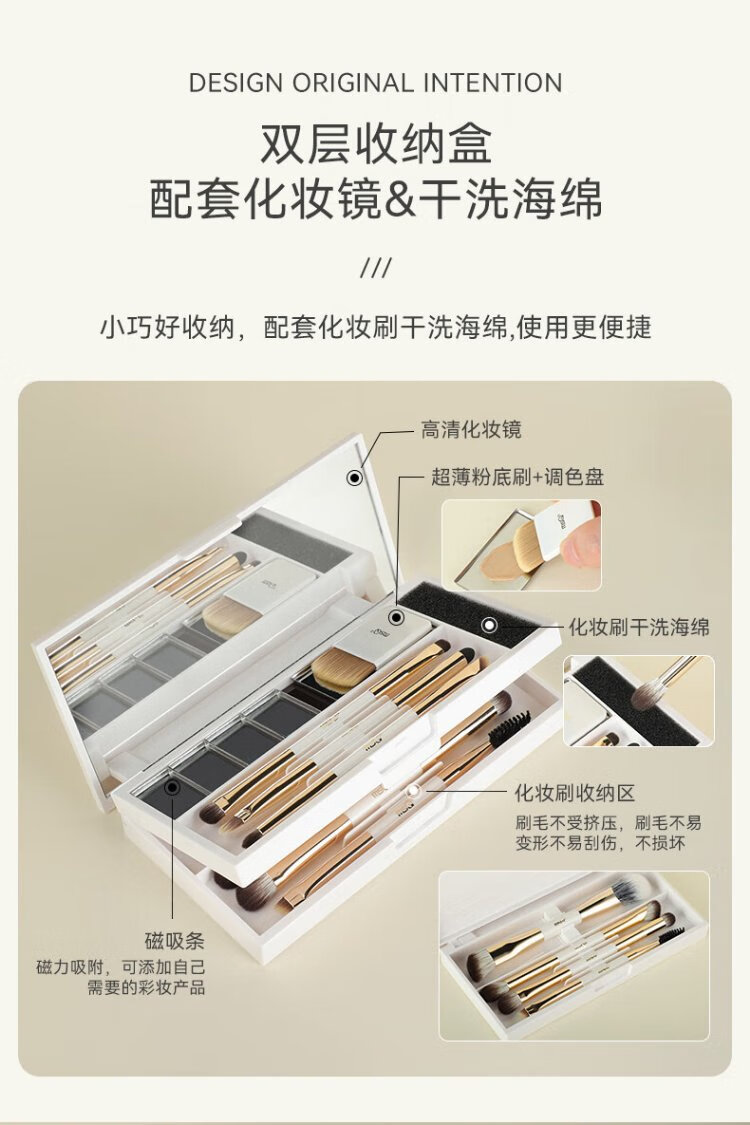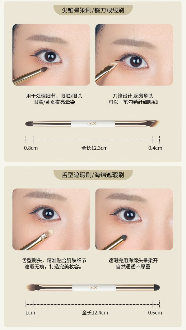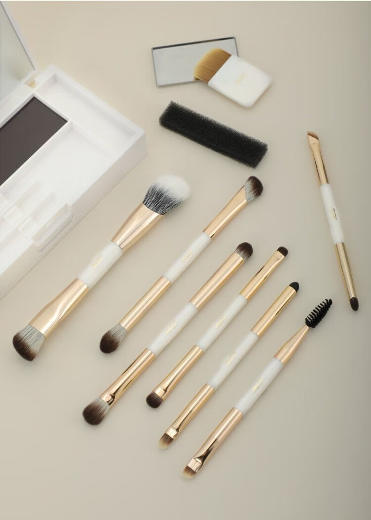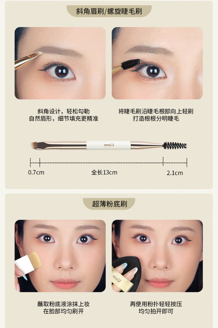MSQ 8 double-headed makeup brushes, three-fold portable set, blush brush, foundation brush, eye shadow brush, concealer brush, beauty tool