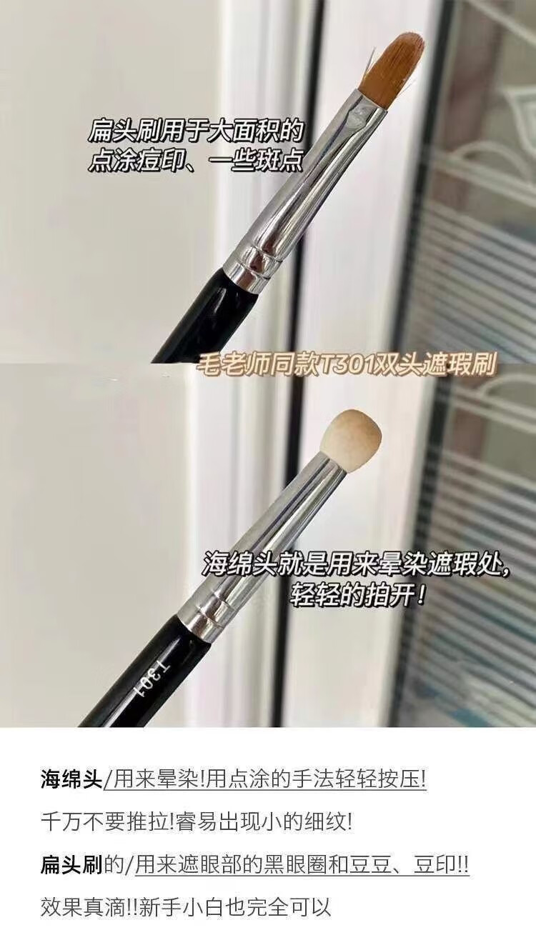 Banrenjia fine flat head double-ended sponge concealer brush lip brush dark circles tear trough eyeliner brush foundation brush quick makeup application T22 fine concealer brush 1