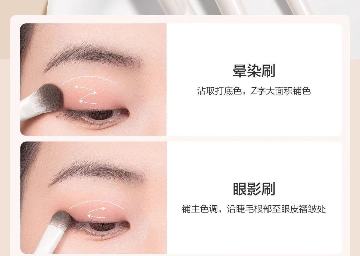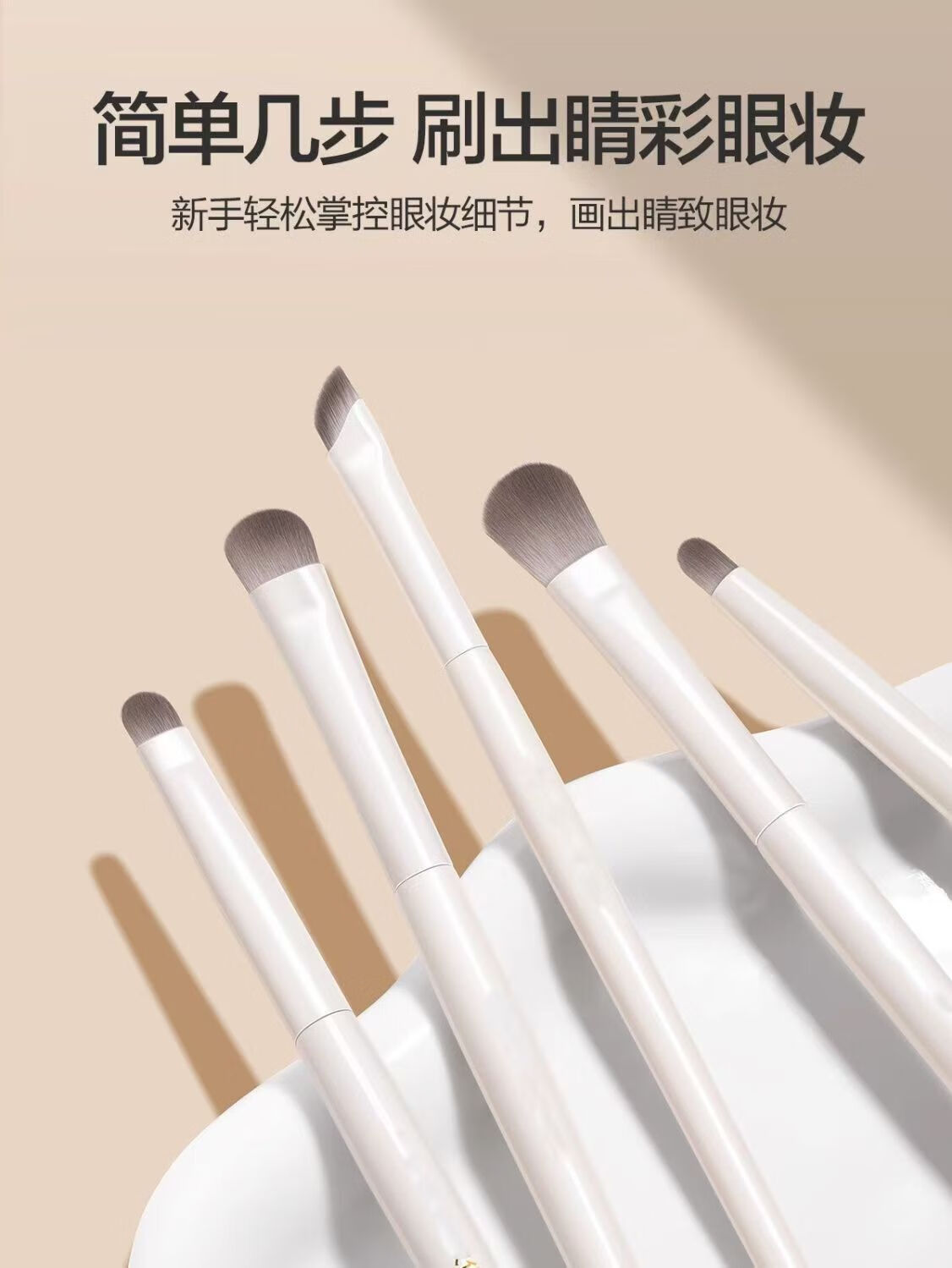 Pure white cloud porcelain makeup brush set, eye shadow blade brush, eyeliner brush, color blending detail eyebrow brush, 5 pieces cloud porcelain makeup brush + storage bag