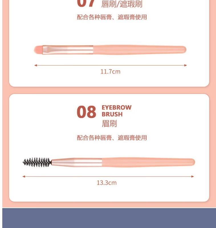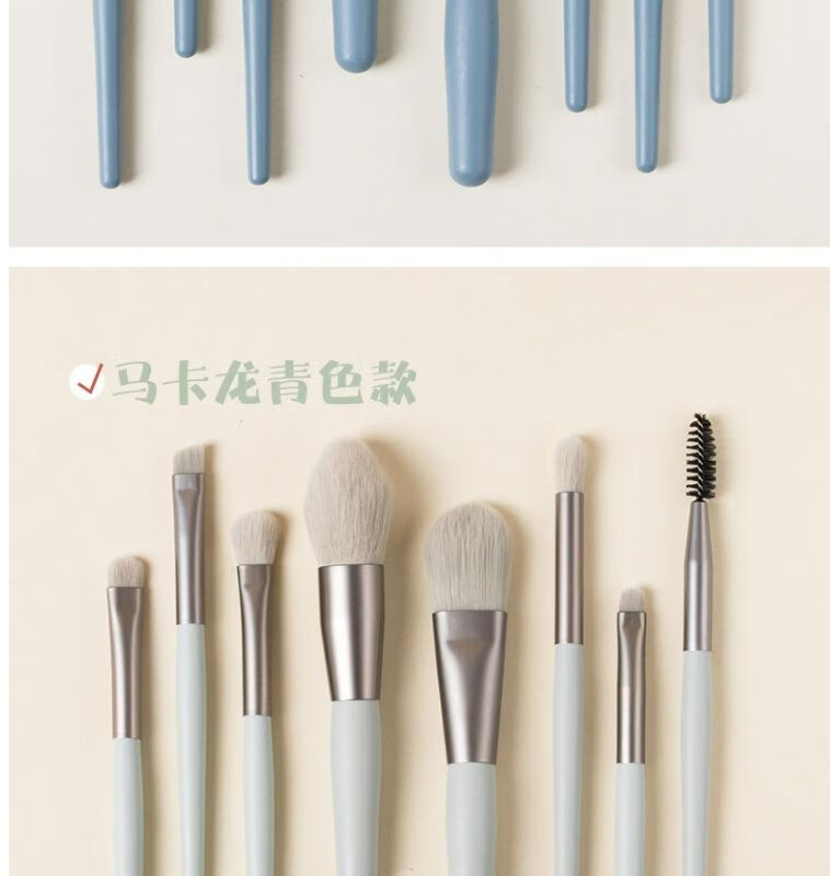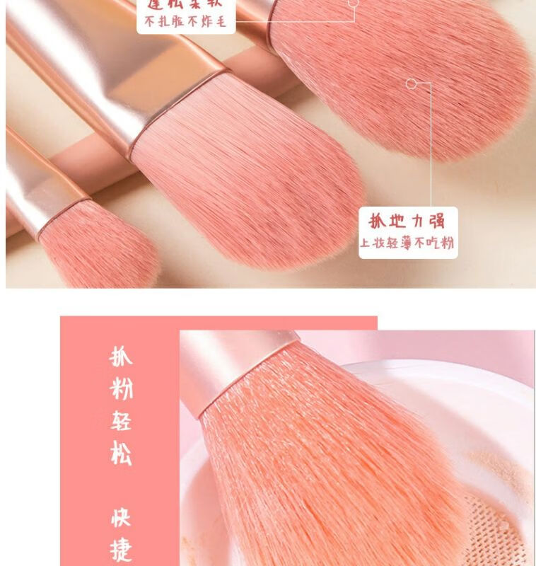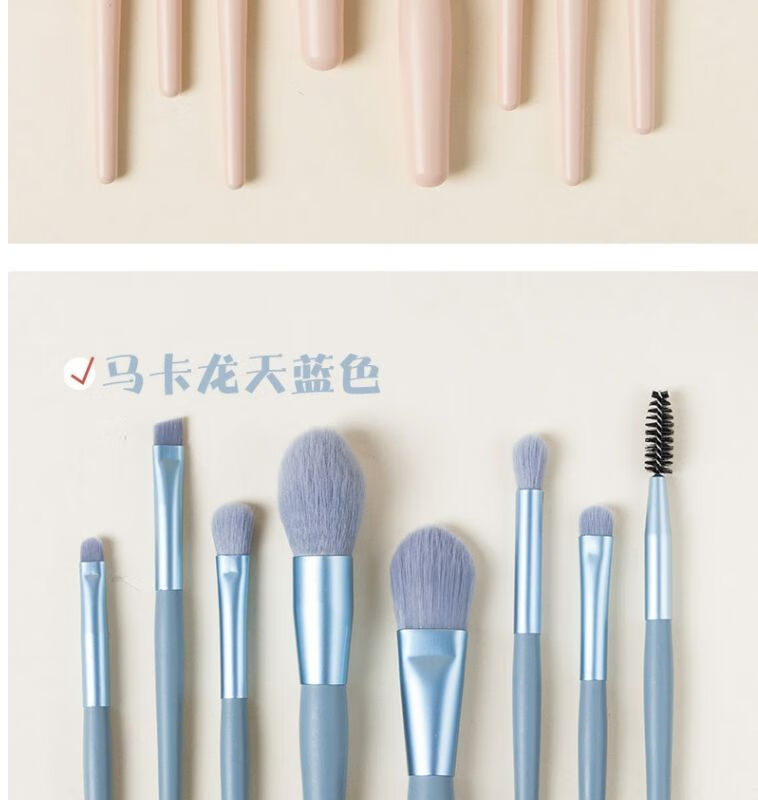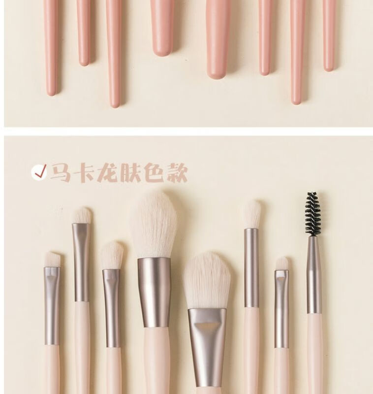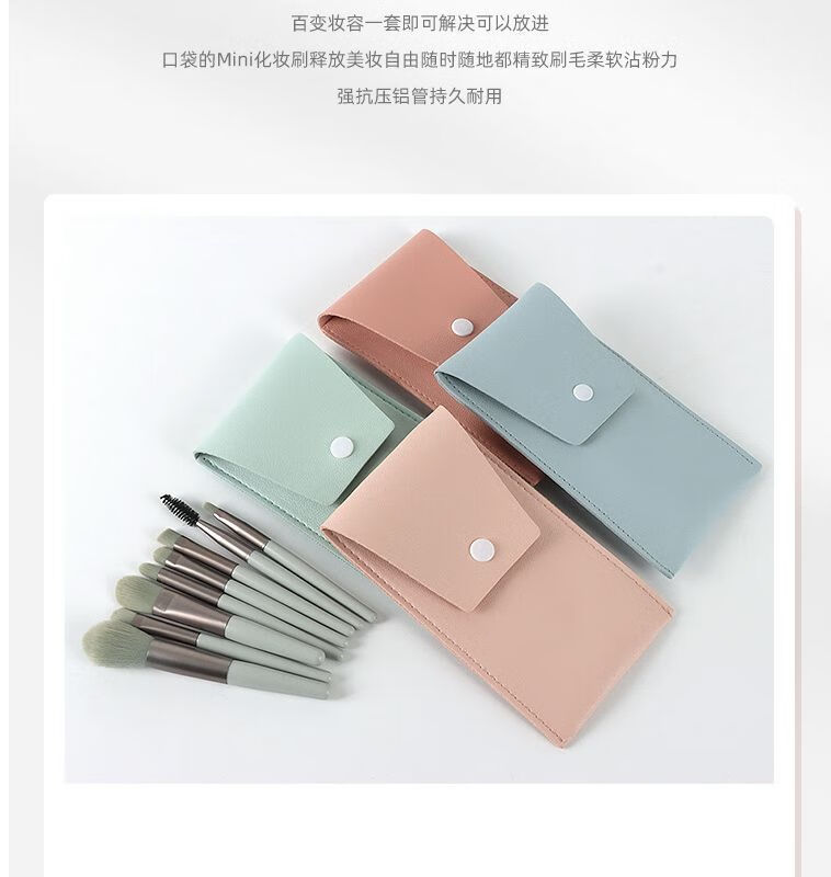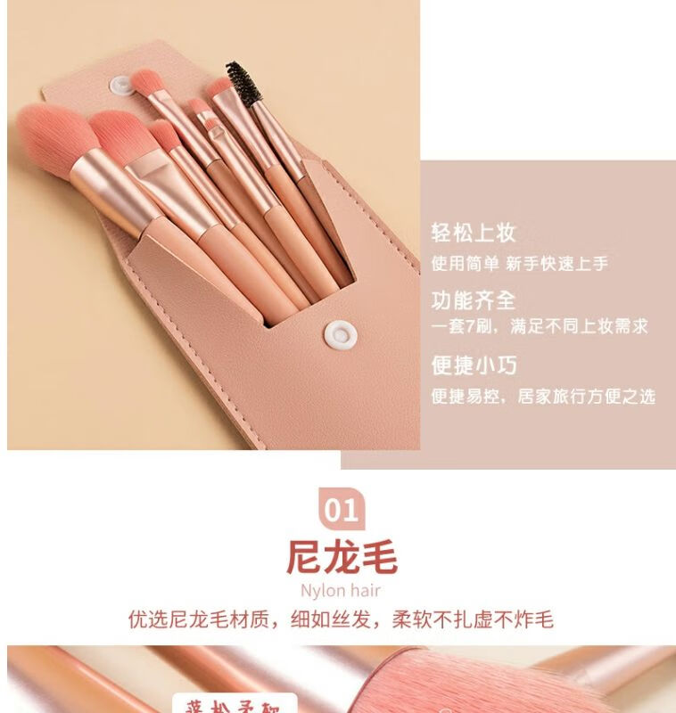 Mini makeup brush set for beginners, portable storage cover, loose powder blush, eye shadow, eyebrow brush, complete set of beauty tools, water bag + apricot color, 8 pieces