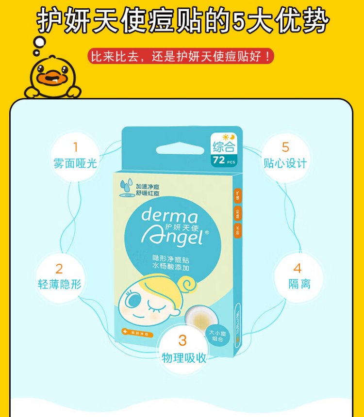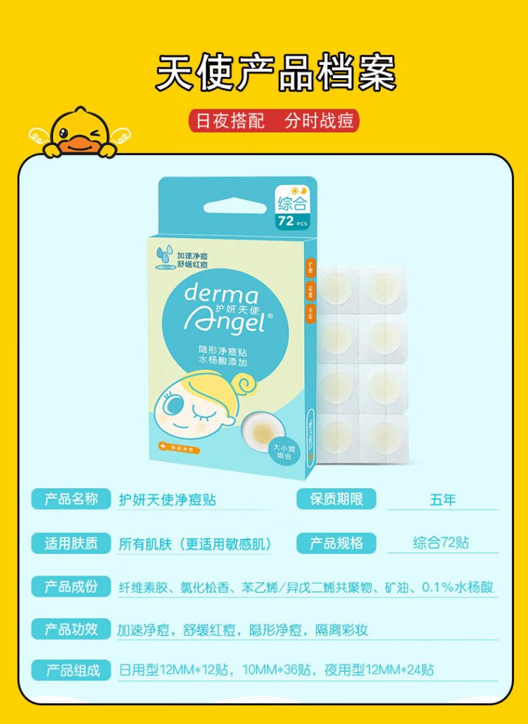 DermaAngel Salicylic Acid Invisible Acne Cleansing Patch Day and Night Mix 72 Patch Acne Patch Can be applied with makeup, ultra-thin, absorbs and concentrates to isolate pollution