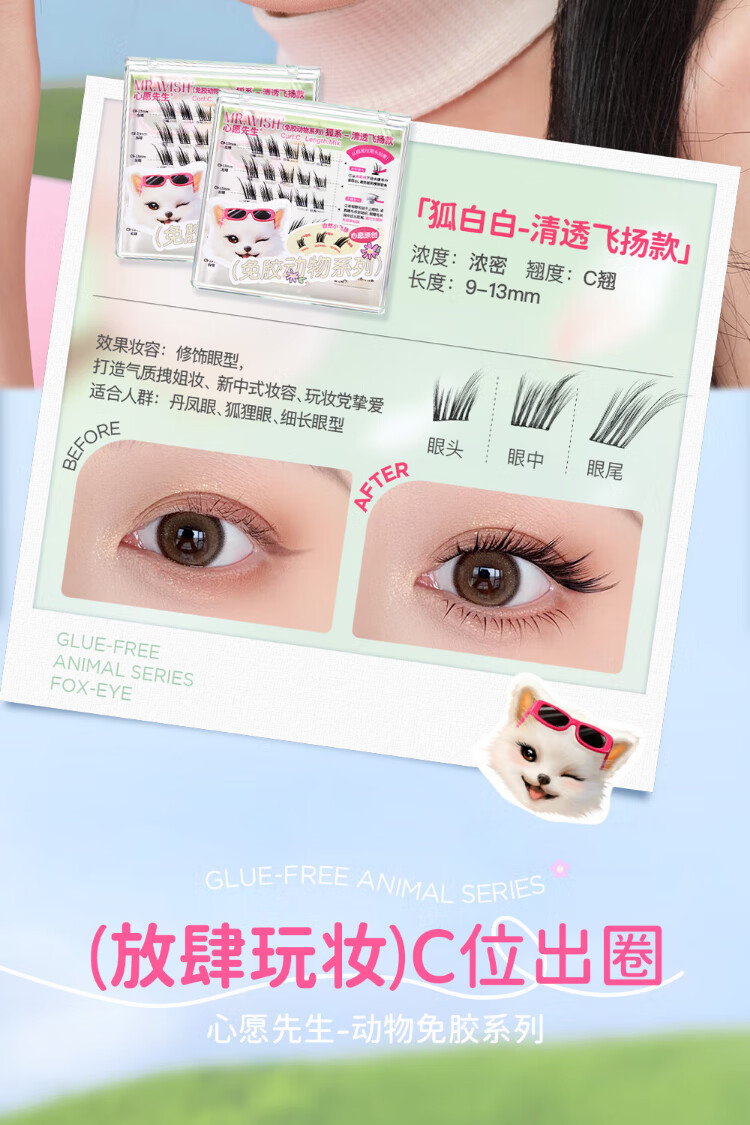 Mr. Wish, glue-free self-made false eyelashes, glue-free bird-tied, photogenic big-eye model, supernatural simulation gift, self-operated eyelashes
