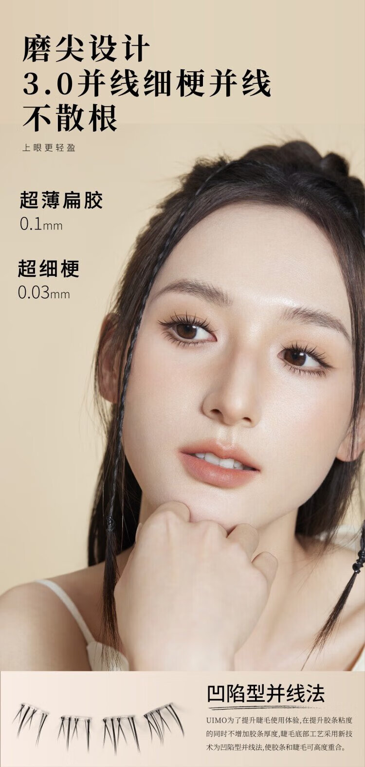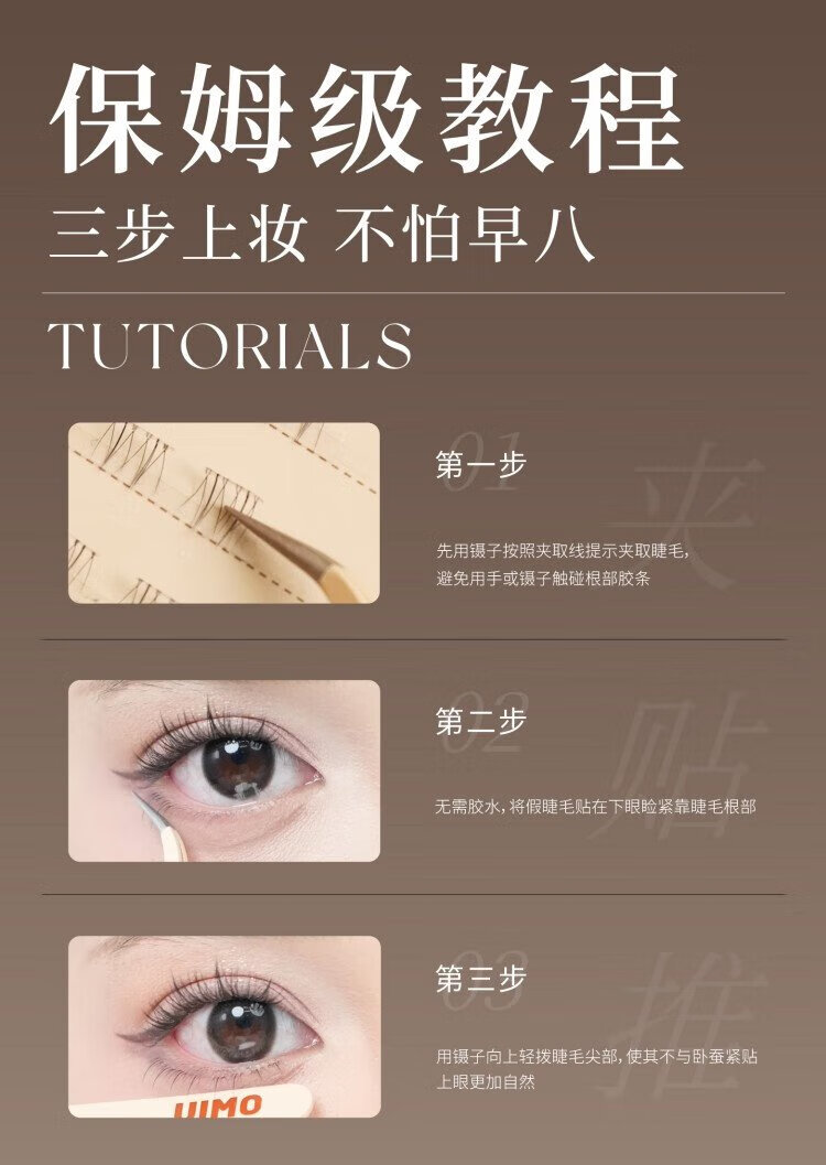 UIMO glue-free lower eyelashes Thai false eyelashes for beginners self-adhesive single cluster soft segmented natural simulation transparent stems