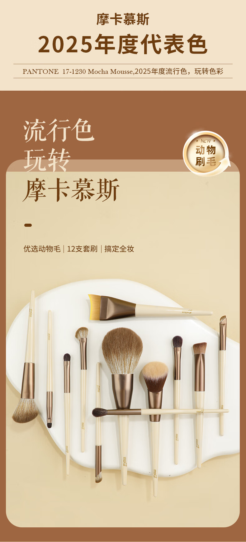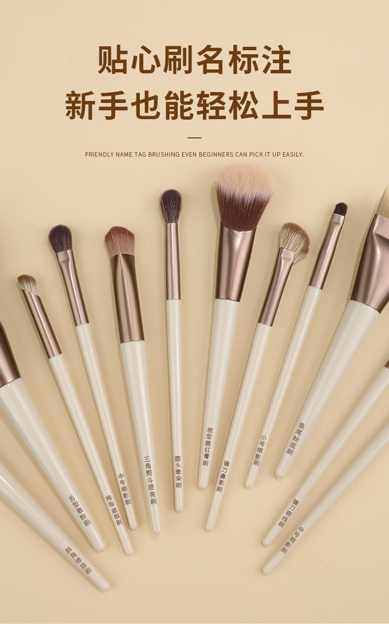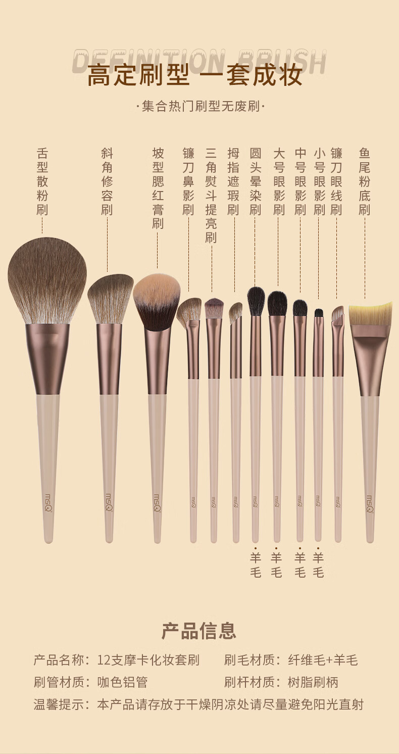 MSQ 12-piece mocha animal hair makeup brush set loose powder brush blush brush nose shadow brush eye shadow brush wool beauty tools
