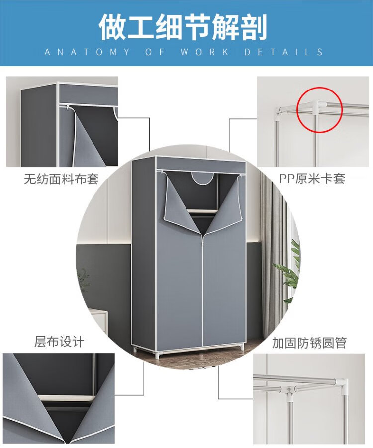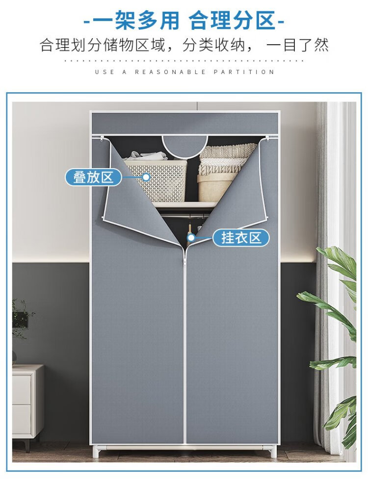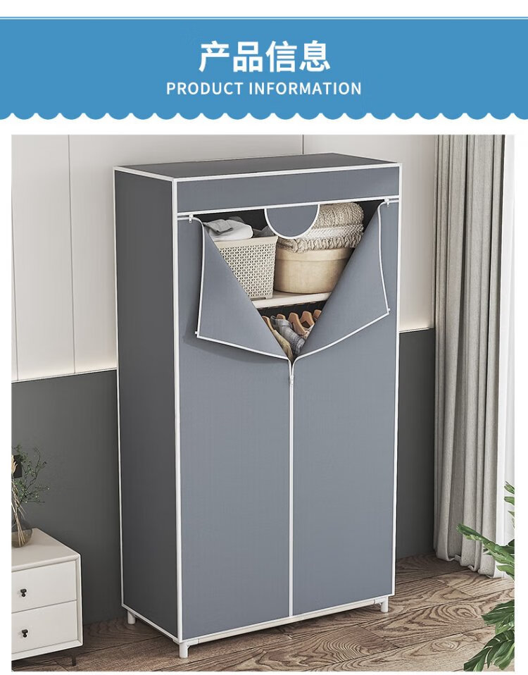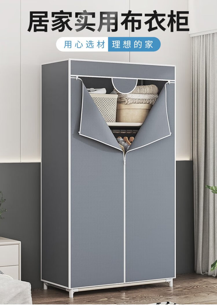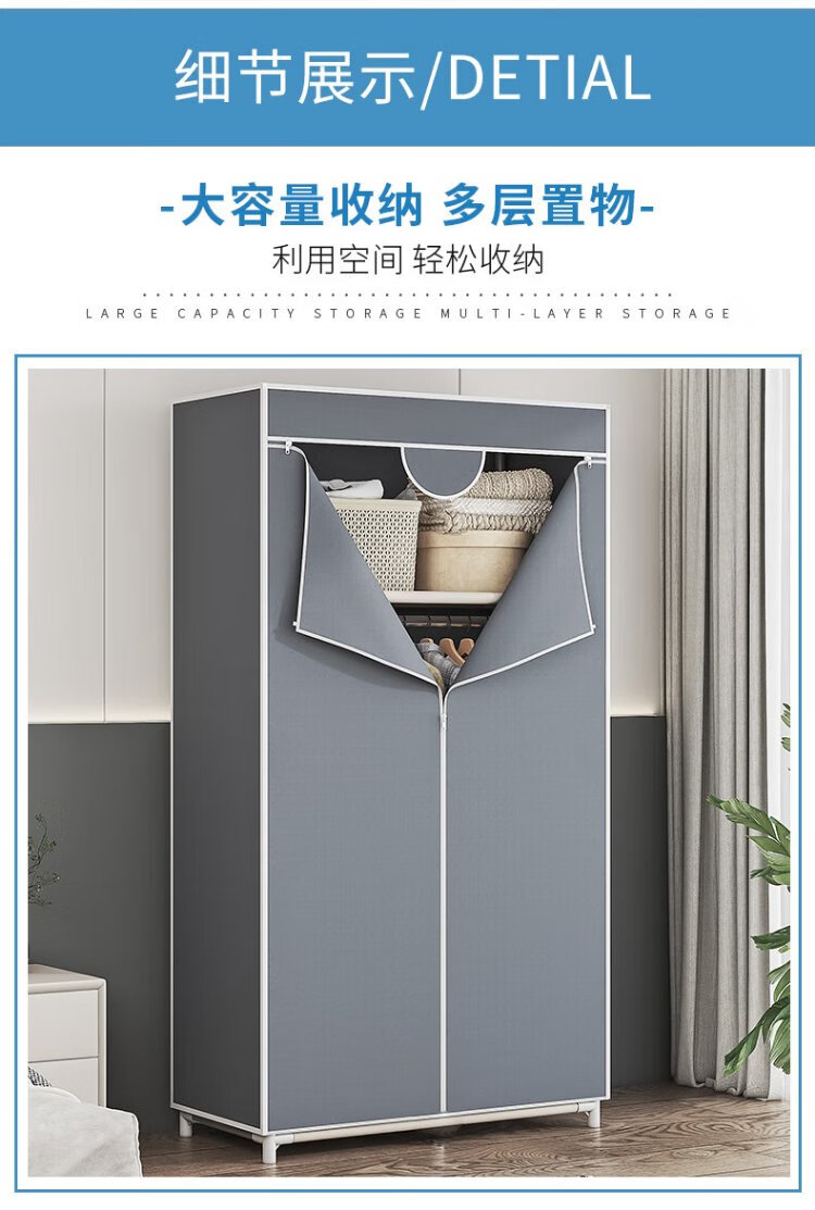 蜗家简易衣柜卧室布衣柜加厚组装衣橱衣服收纳柜出租屋宿舍布衣柜