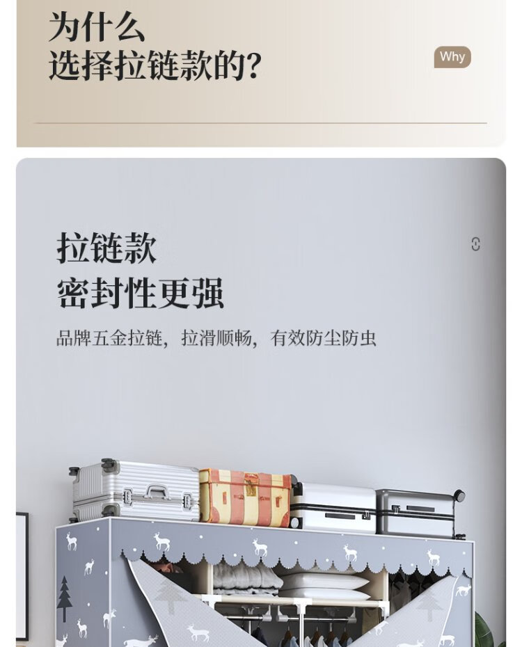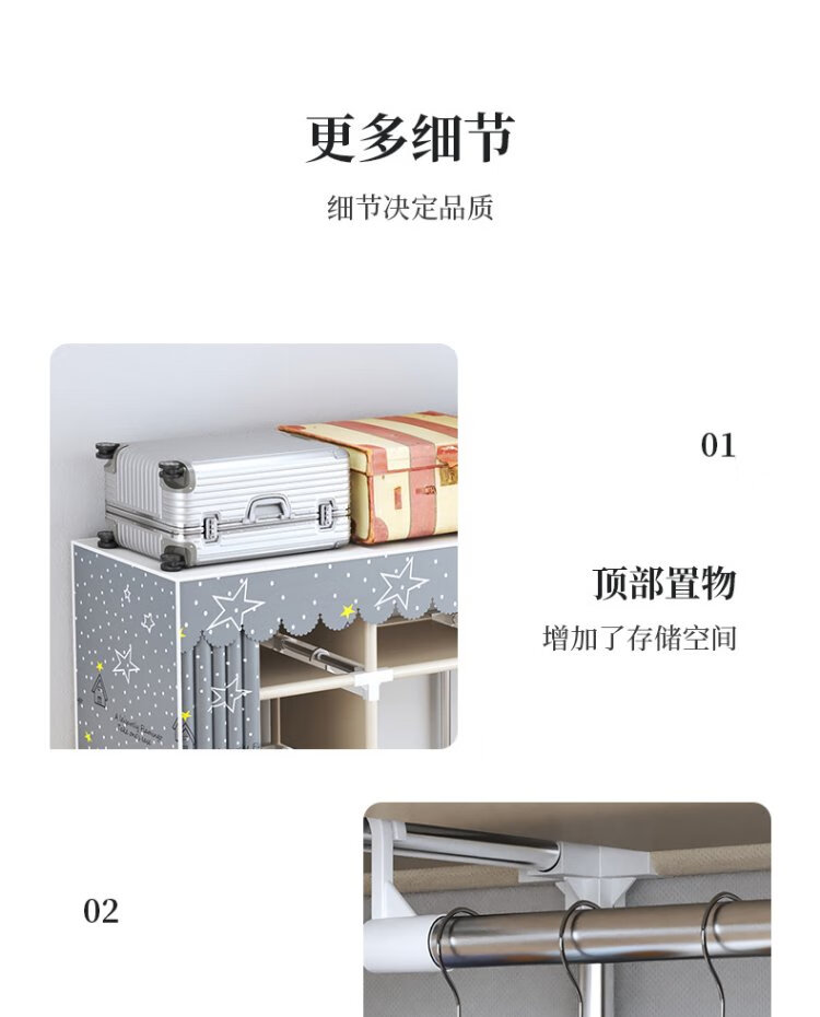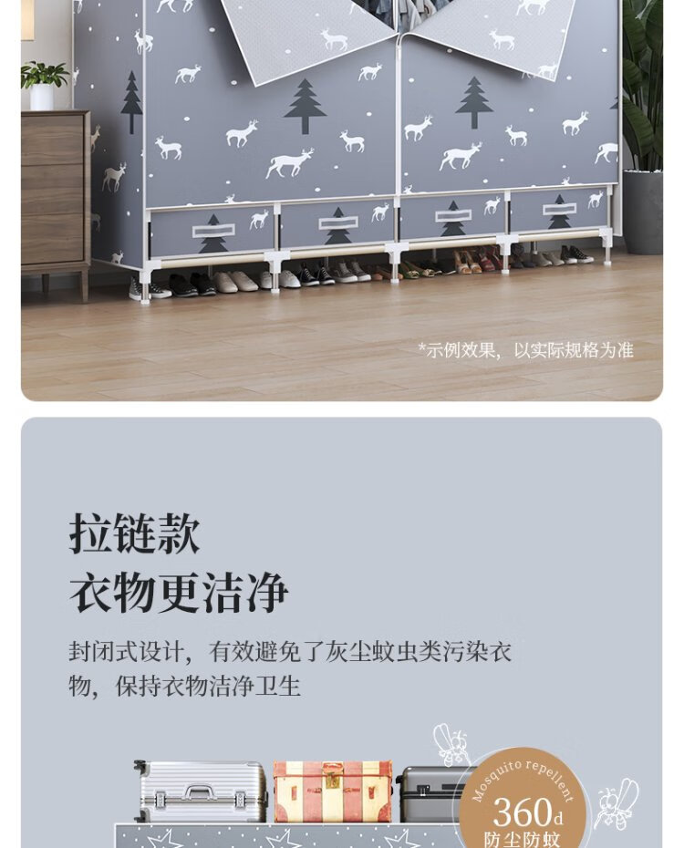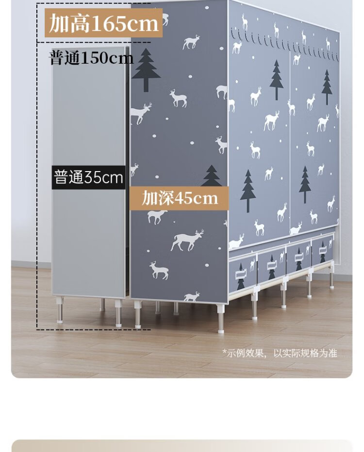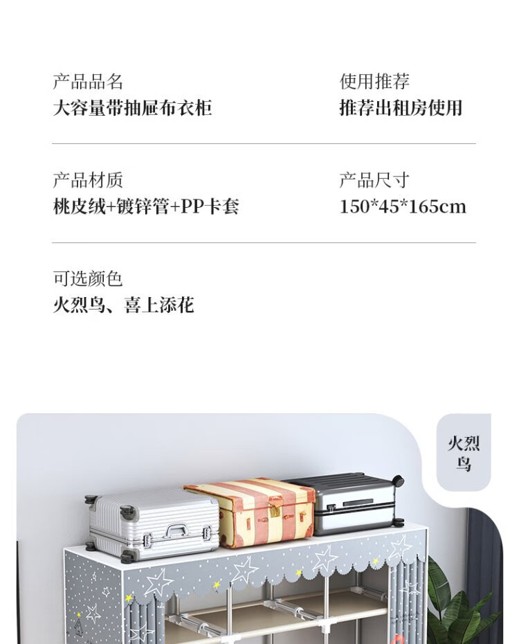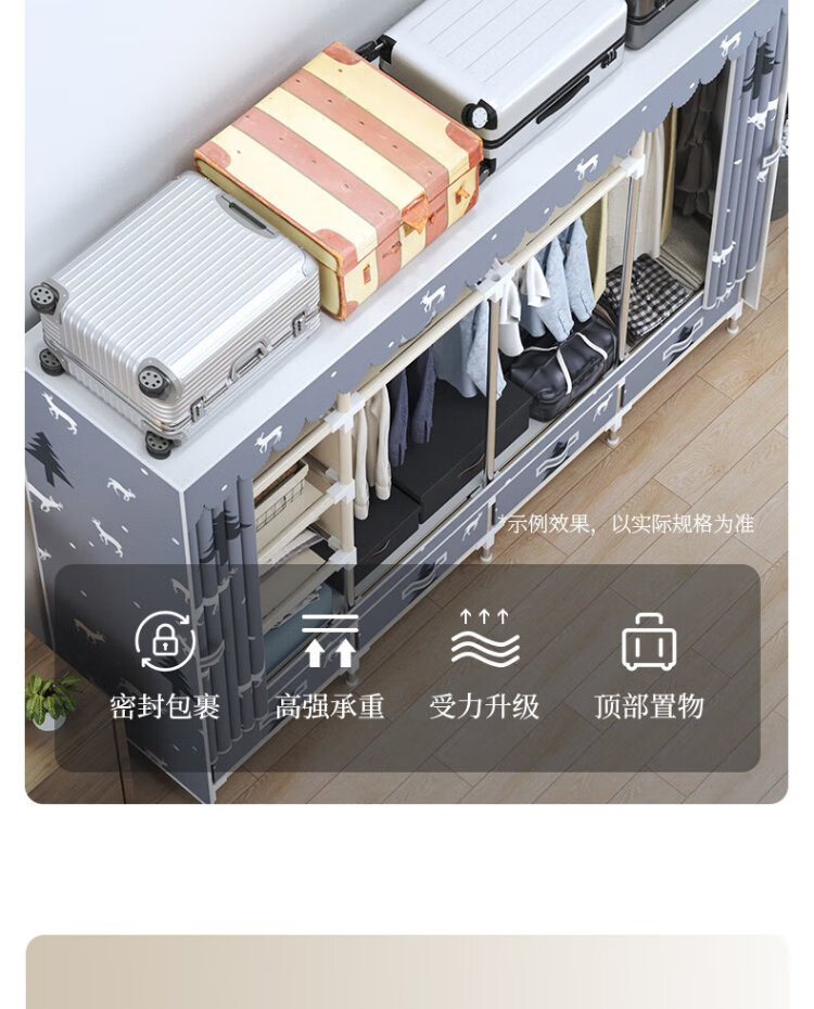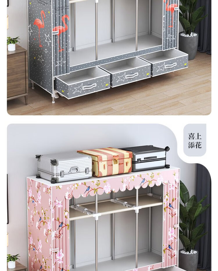 Jialiren wardrobe with drawers cloth wardrobe 1.5 meters double bedroom simple wardrobe dormitory thick steel tube wardrobe storage cabinet