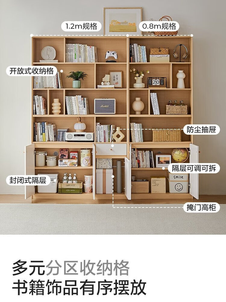 Lin's home floor-standing bookcase storage rack bookshelf integrated wall-mounted living room simple storage display cabinet UV2X