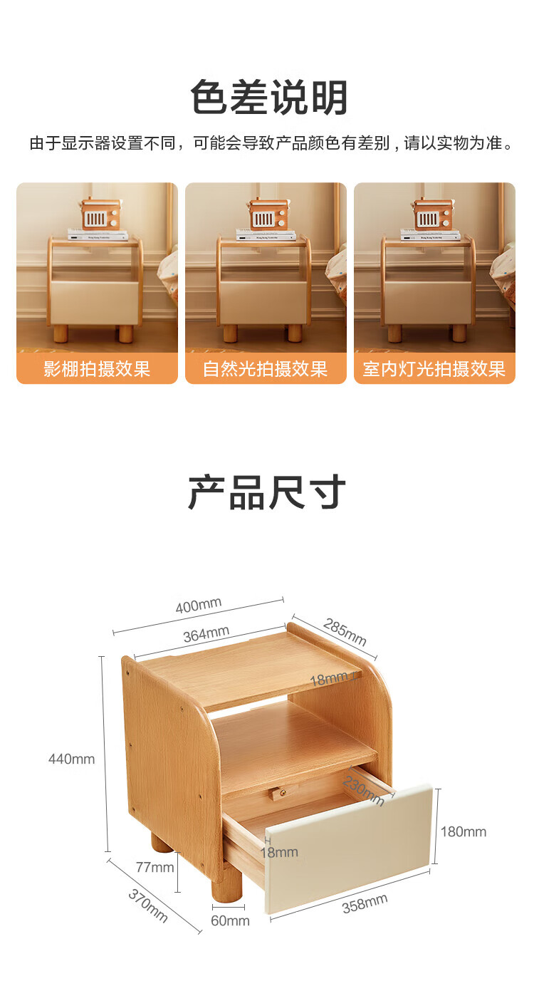 京东京造家居奶酪实木床头柜 儿童卧室收纳柜简约创意床边置物柜