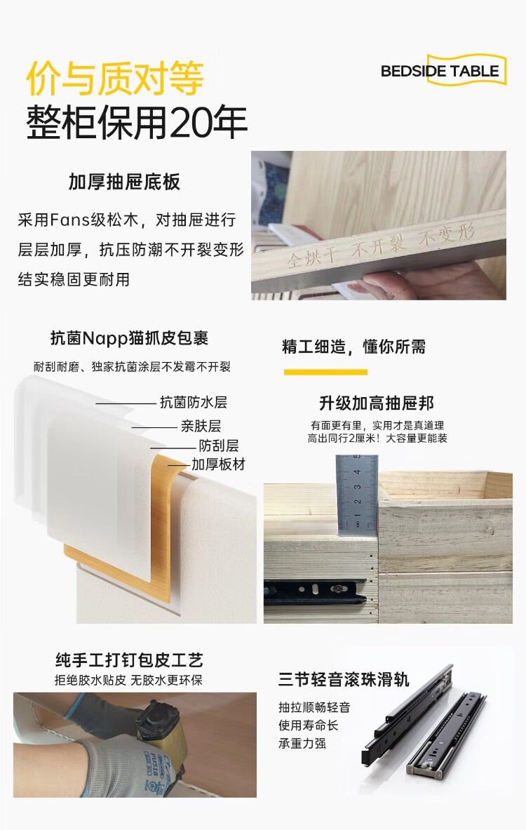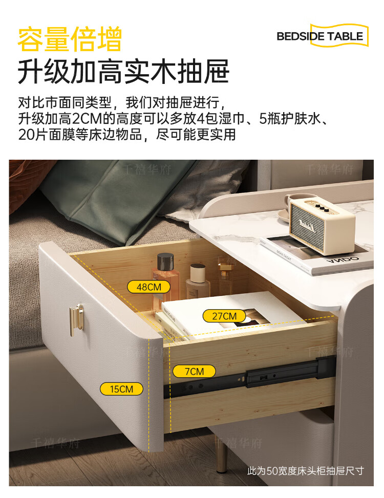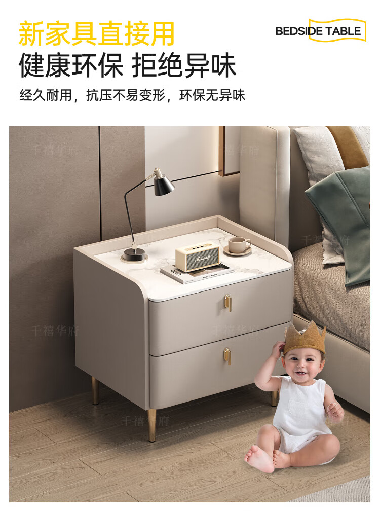 千禧华府床头柜卧室家用小型床头柜子现代简约床头储物柜轻奢风床边柜45