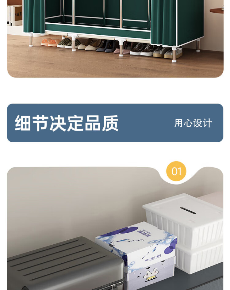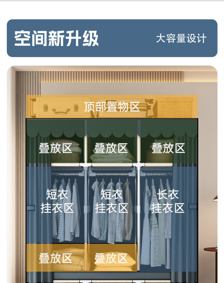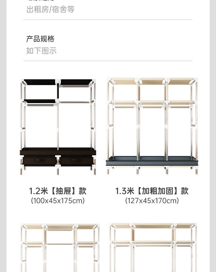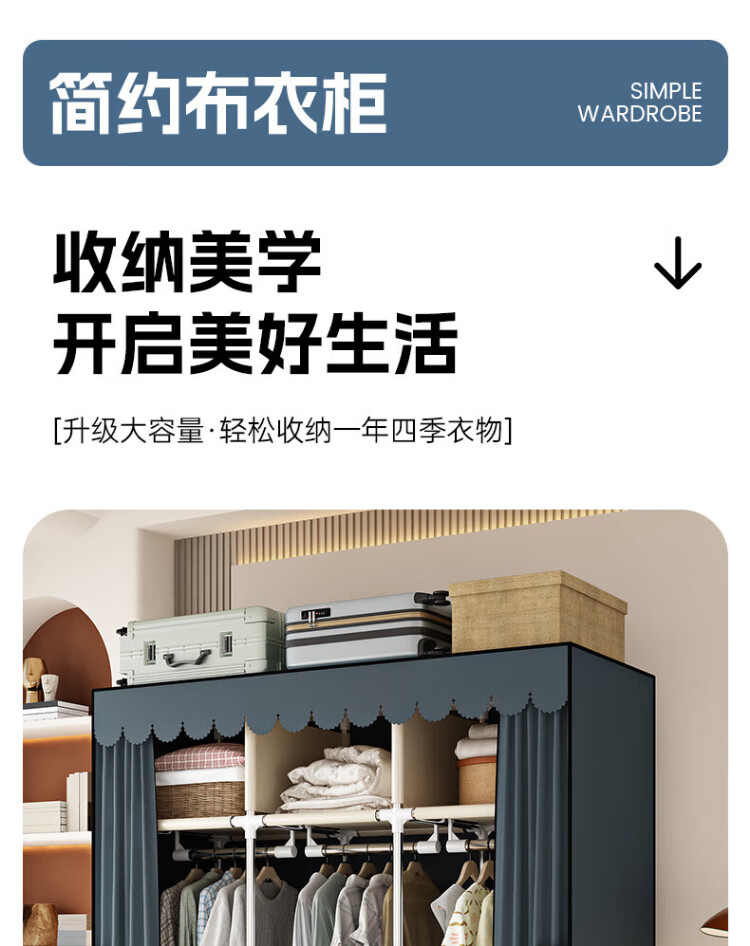 家丽人衣柜加粗钢管简易衣柜卧室布衣柜出租房衣橱收纳学生宿舍柜子家用