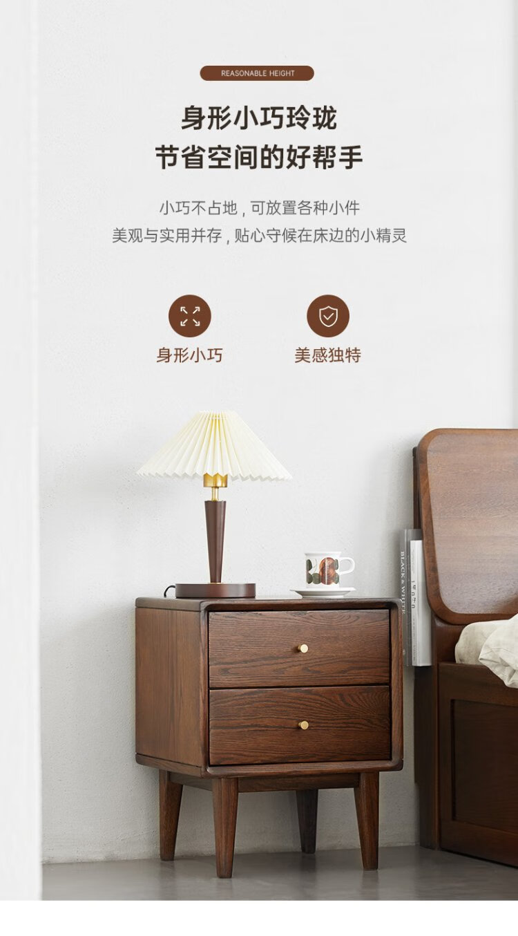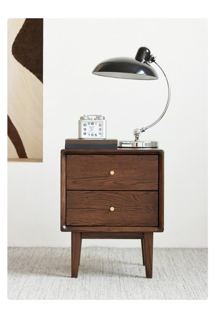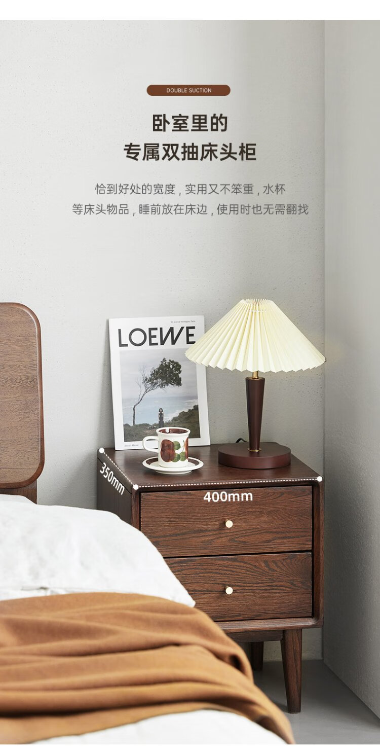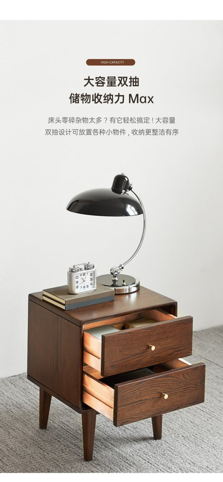 原始原素 实木床头柜 两抽北欧简约卧室橡木储物柜边柜 黑胡桃色 F8024