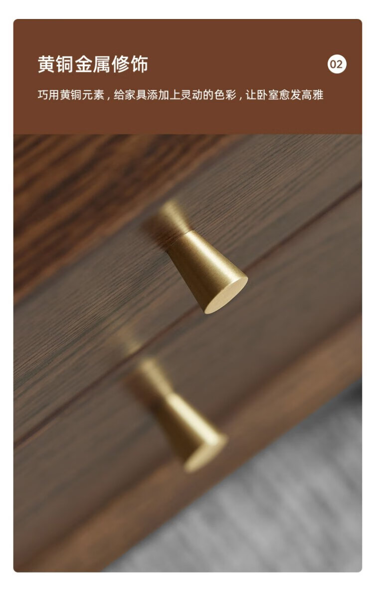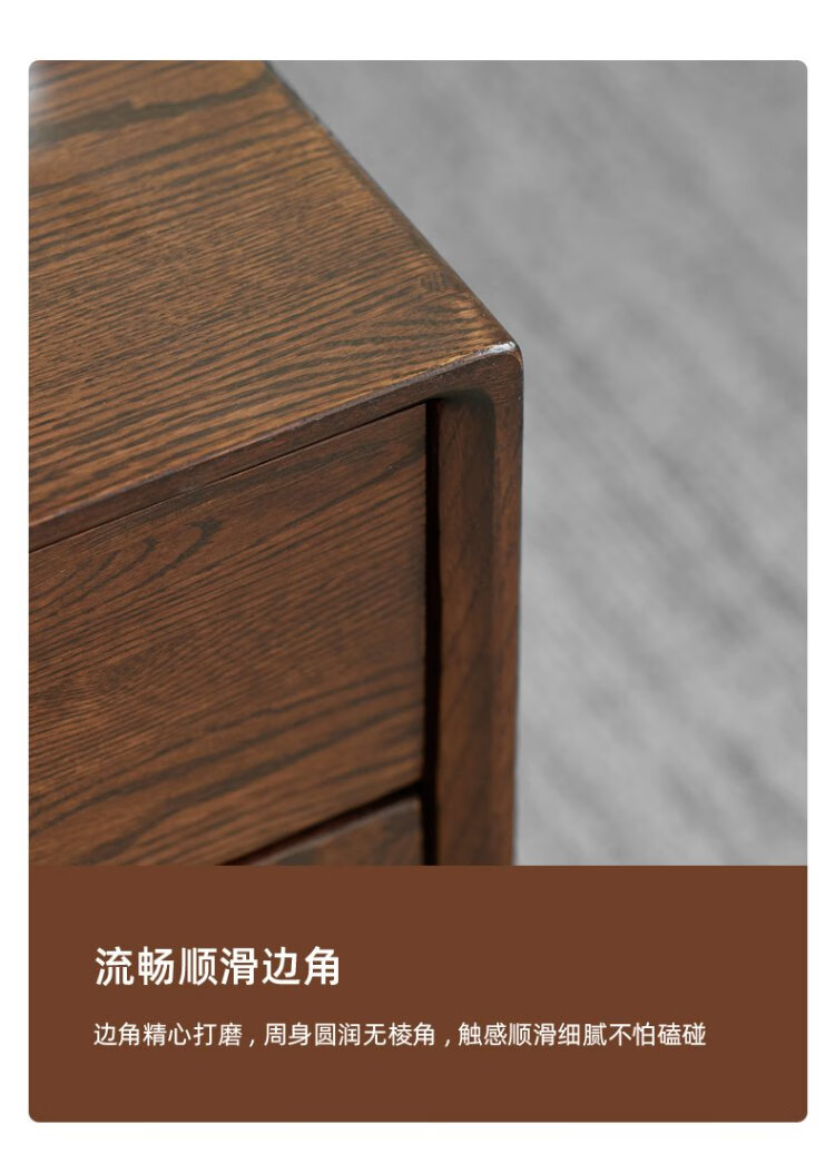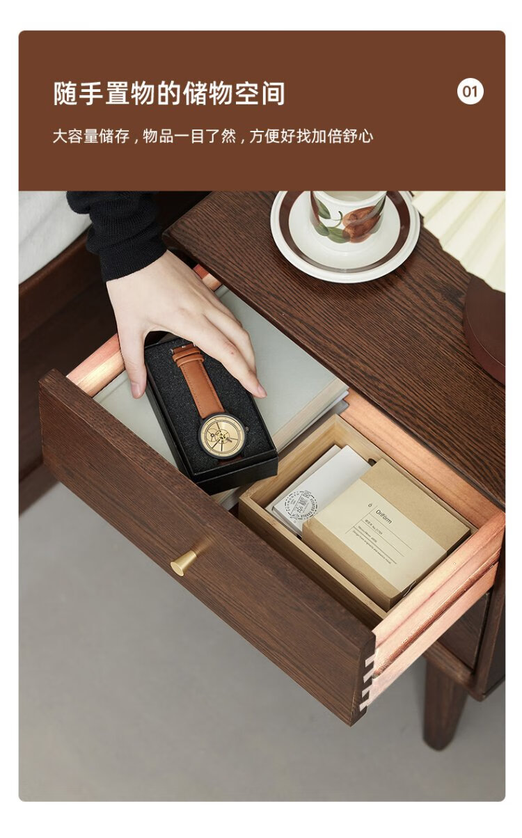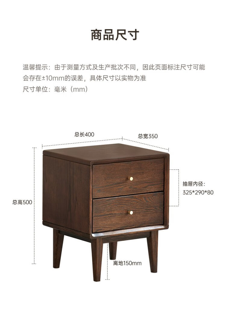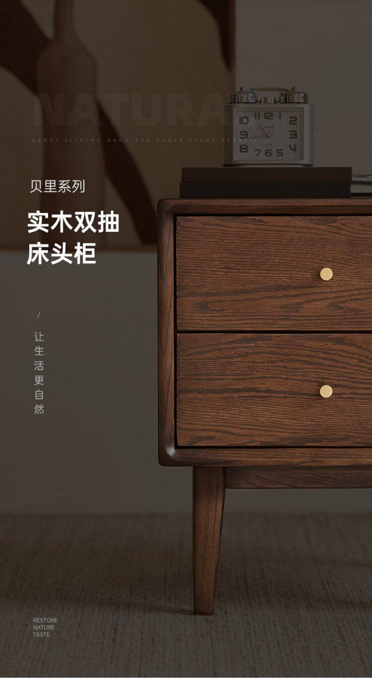原始原素 实木床头柜 两抽北欧简约卧室橡木储物柜边柜 黑胡桃色 F8024
