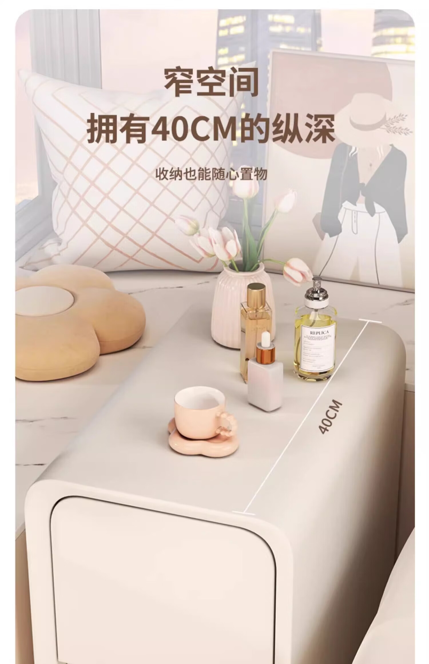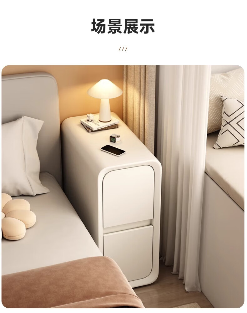 Mijia Чрезвычайно узкая прикроватная тумбочка Маленькая простая современная спальня сэндвич из массива дерева Узкий шкаф Мини-прикроватная полка для хранения Простой шкаф Молочно-белый улучшенный утолщенный массив дерева 20x40x47 см Полностью отправлен и доставлен к вам домой