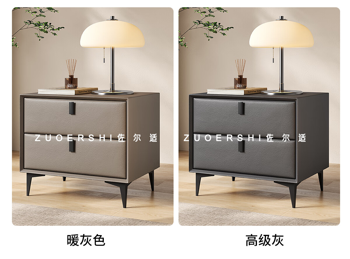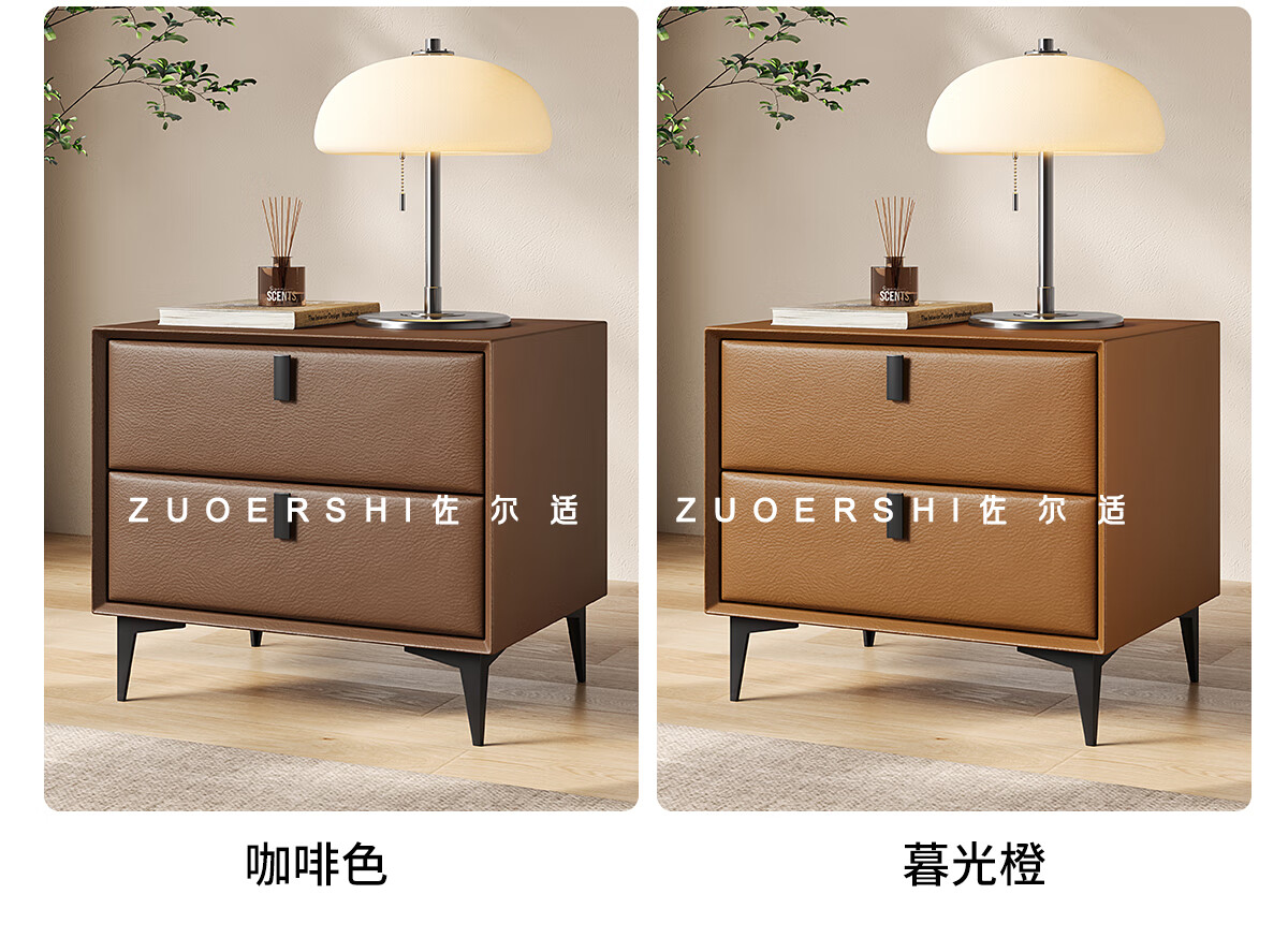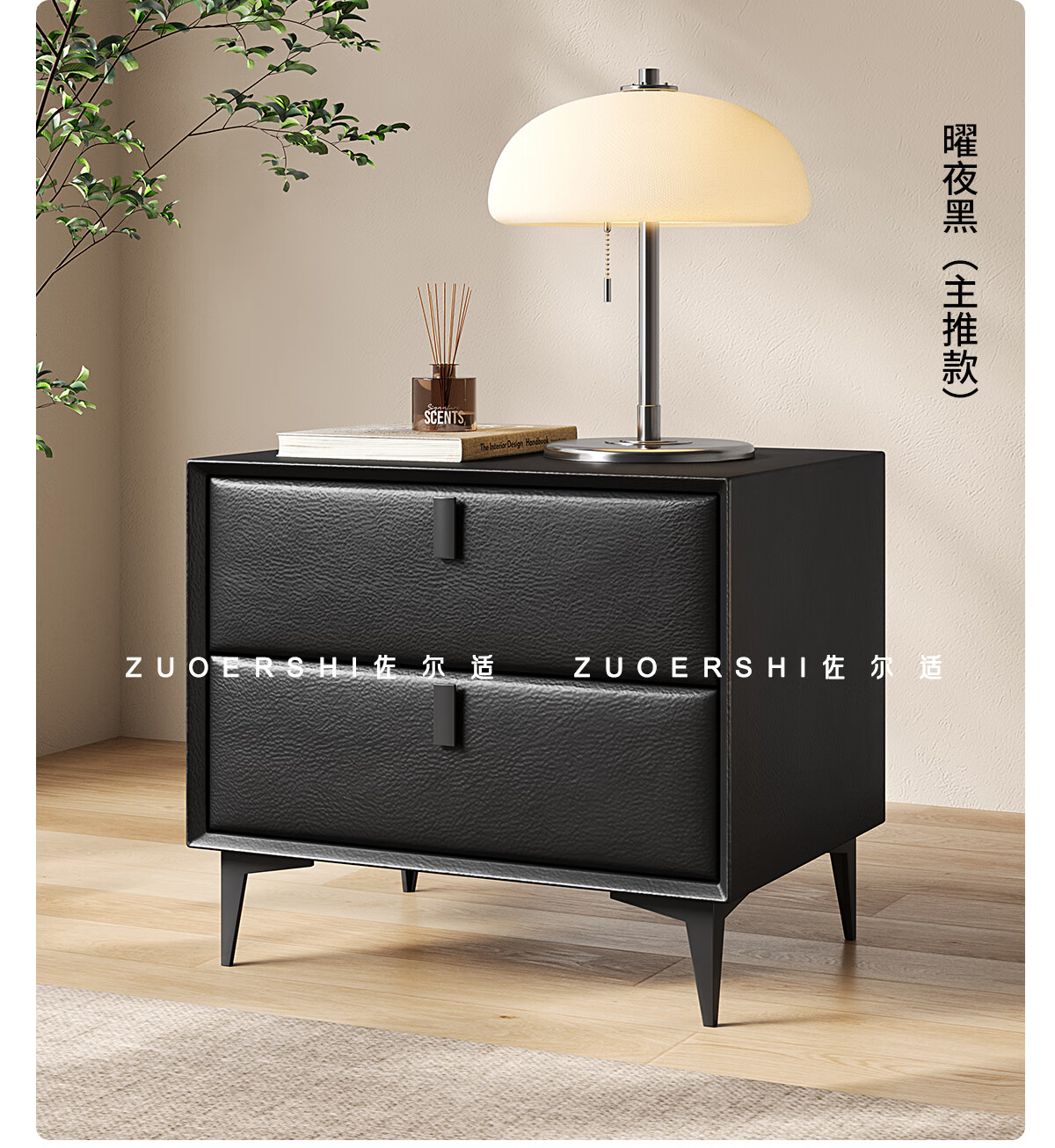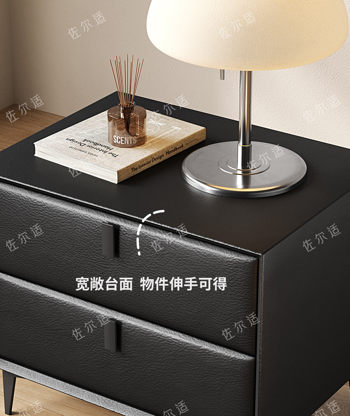 佐尔适意式极简悠悠床头柜现代简约床边柜实木皮质收纳柜 45CM床头柜*1(单拍自提)