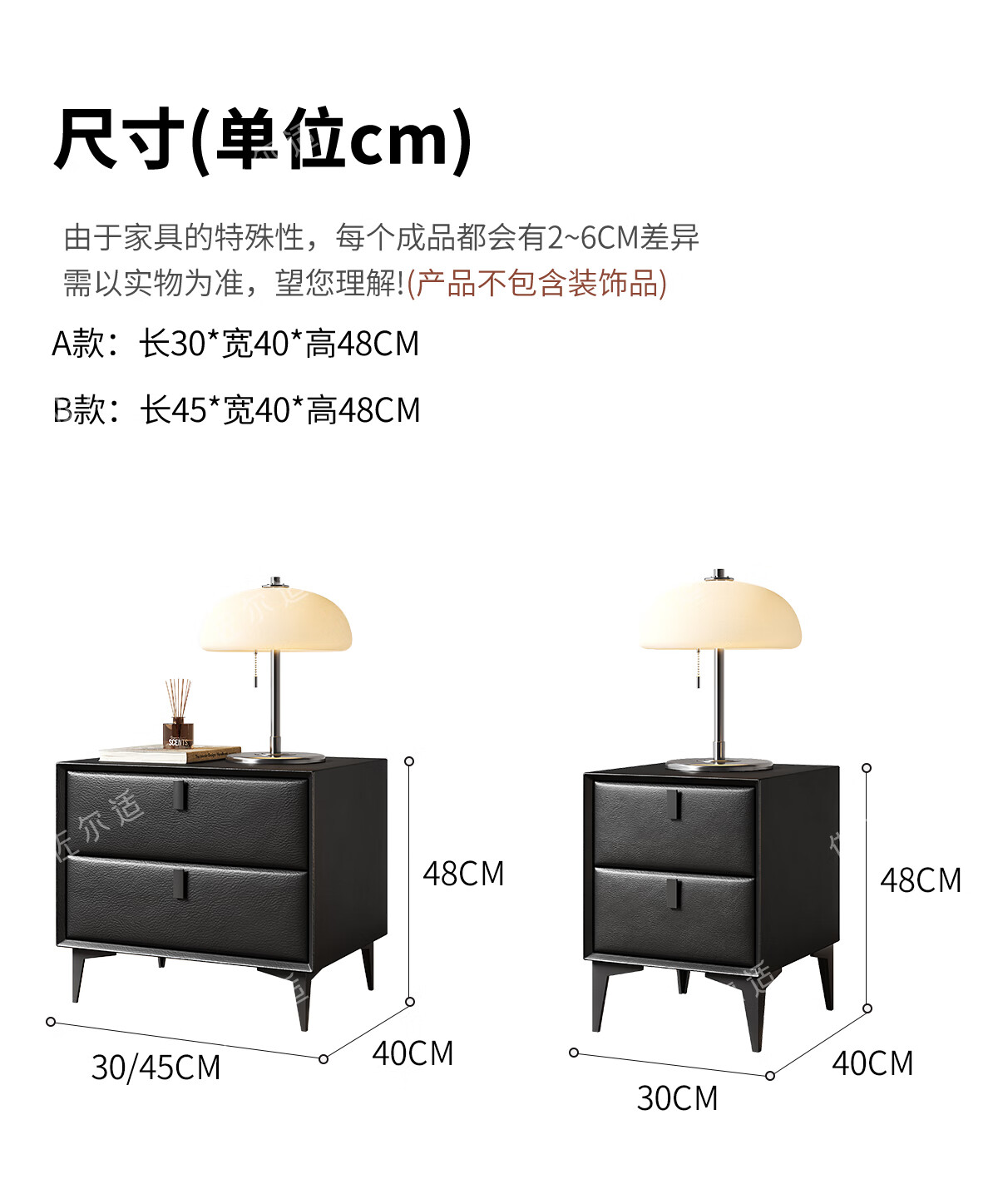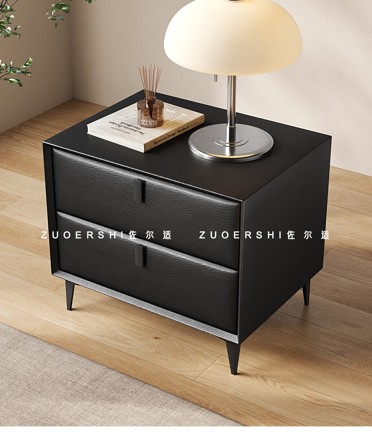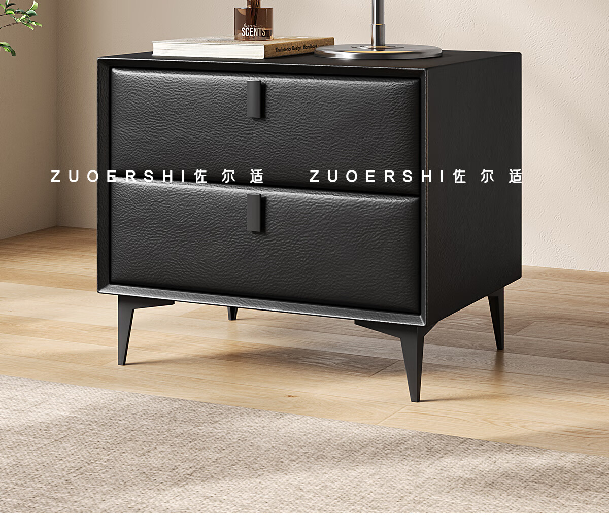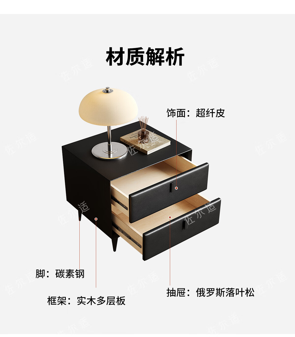 佐尔适意式极简悠悠床头柜现代简约床边柜实木皮质收纳柜 45CM床头柜*1(单拍自提)