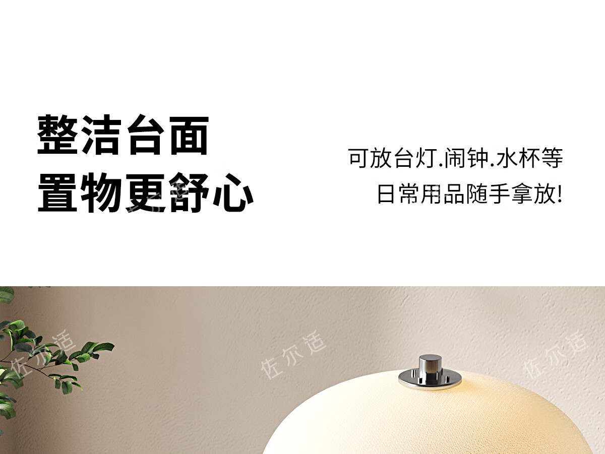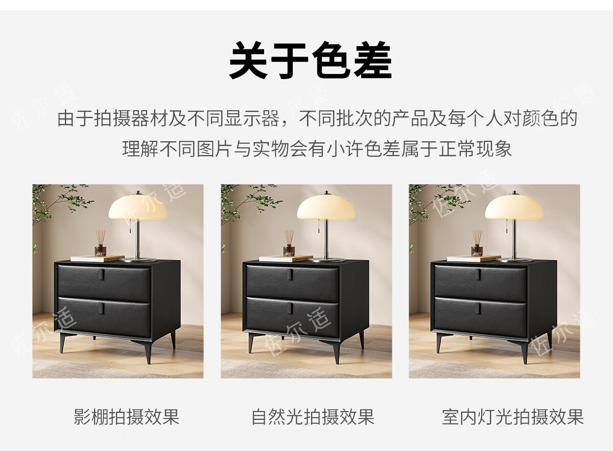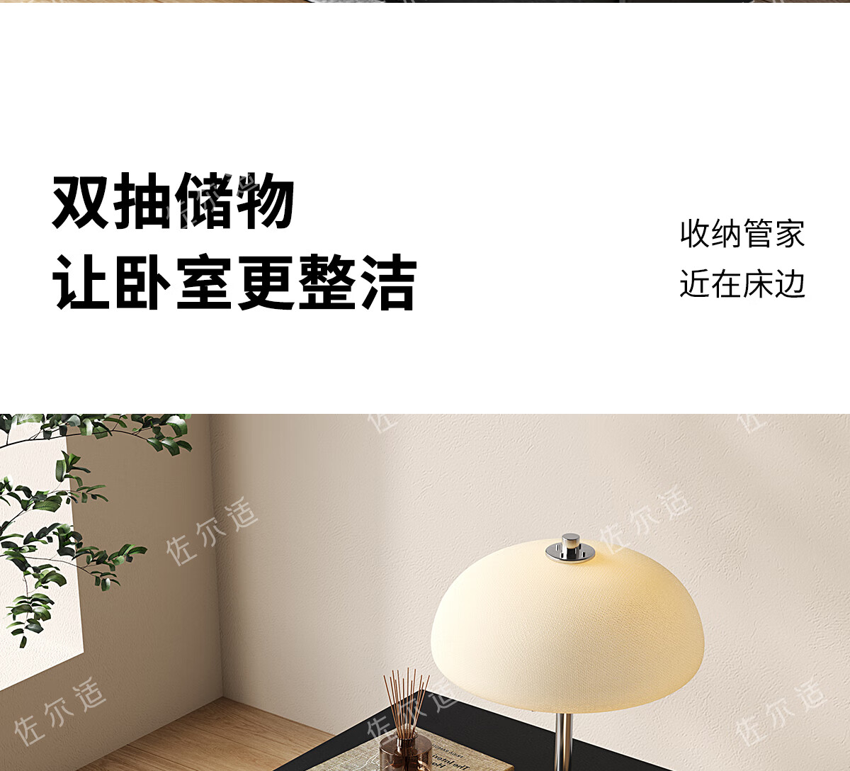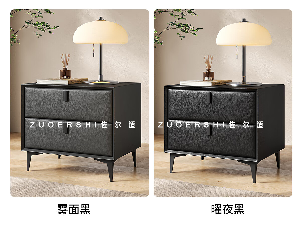 佐尔适意式极简悠悠床头柜现代简约床边柜实木皮质收纳柜 45CM床头柜*1(单拍自提)