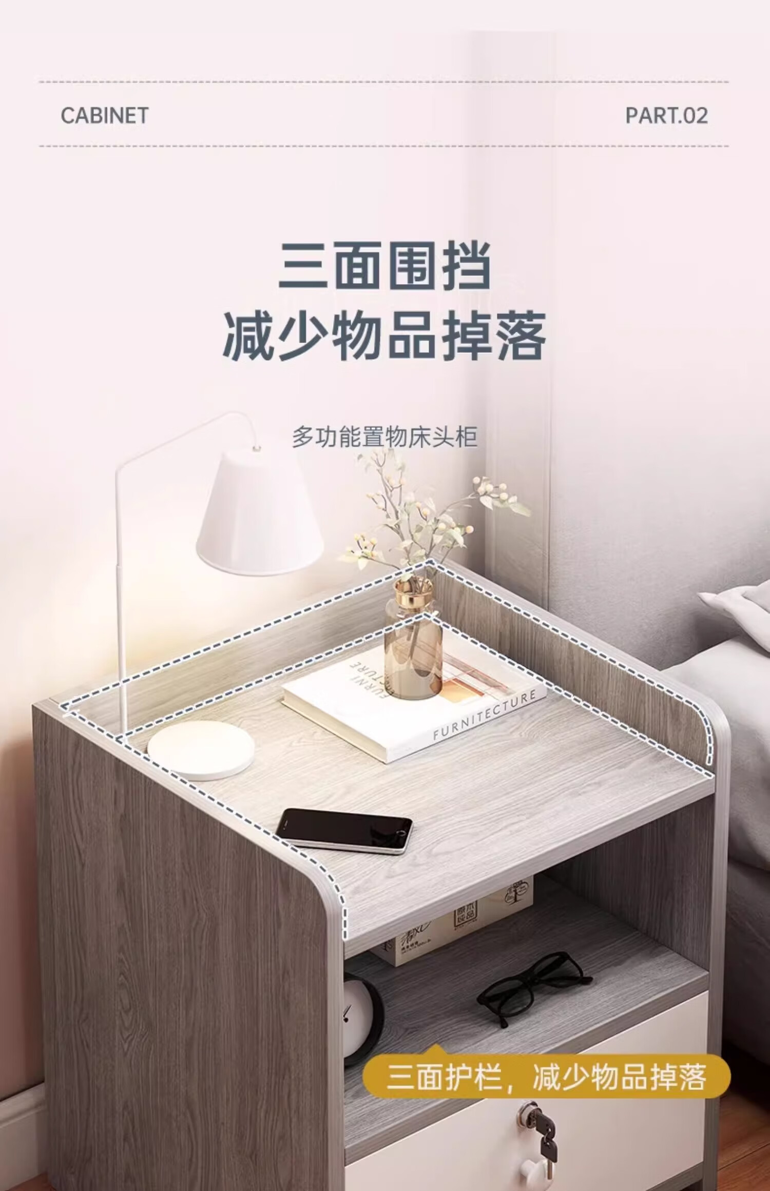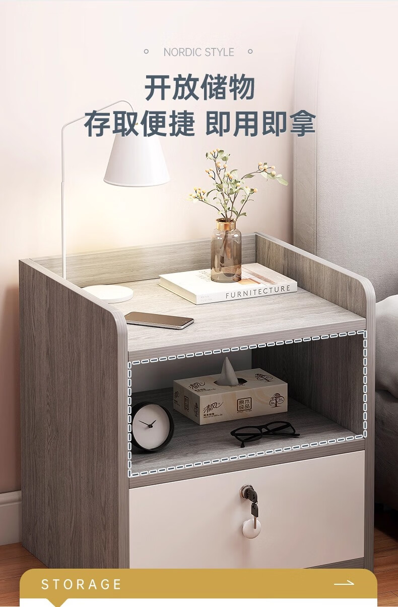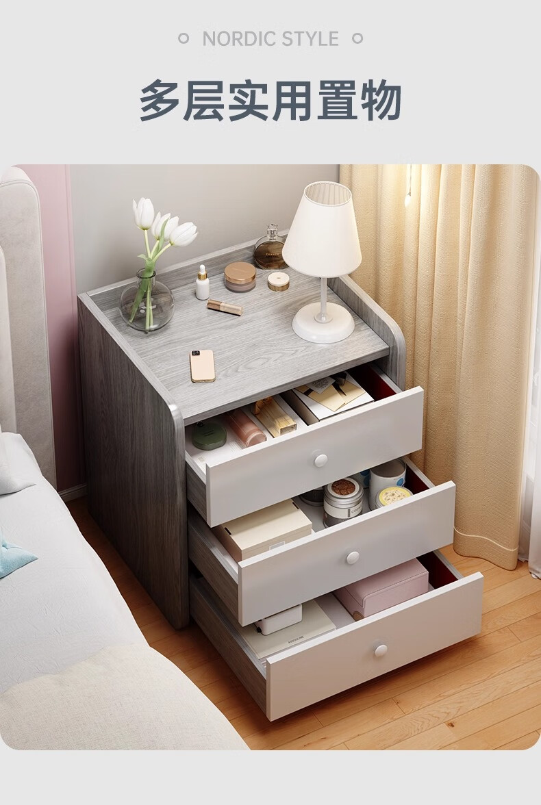 Table de chevet simple moderne simple petit meuble de rangement domestique armoire de chambre support de rangement armoire de rangement de location double tiroir Morandi gris version assemblée