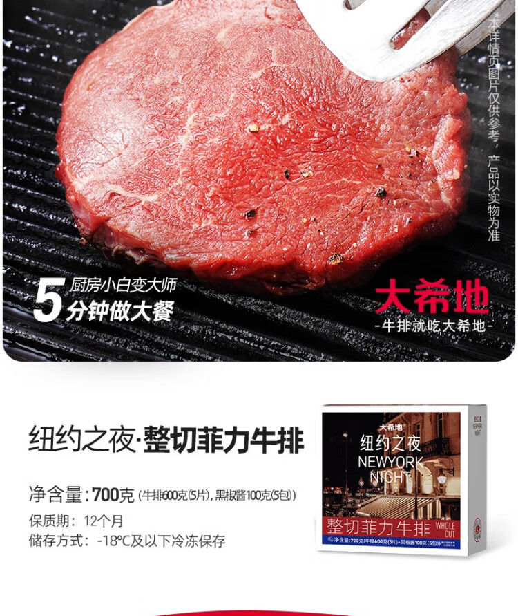 Dahiti boxed filet whole cut seasoned steak set 700g thick cut steak children's beef gift box barbecue
