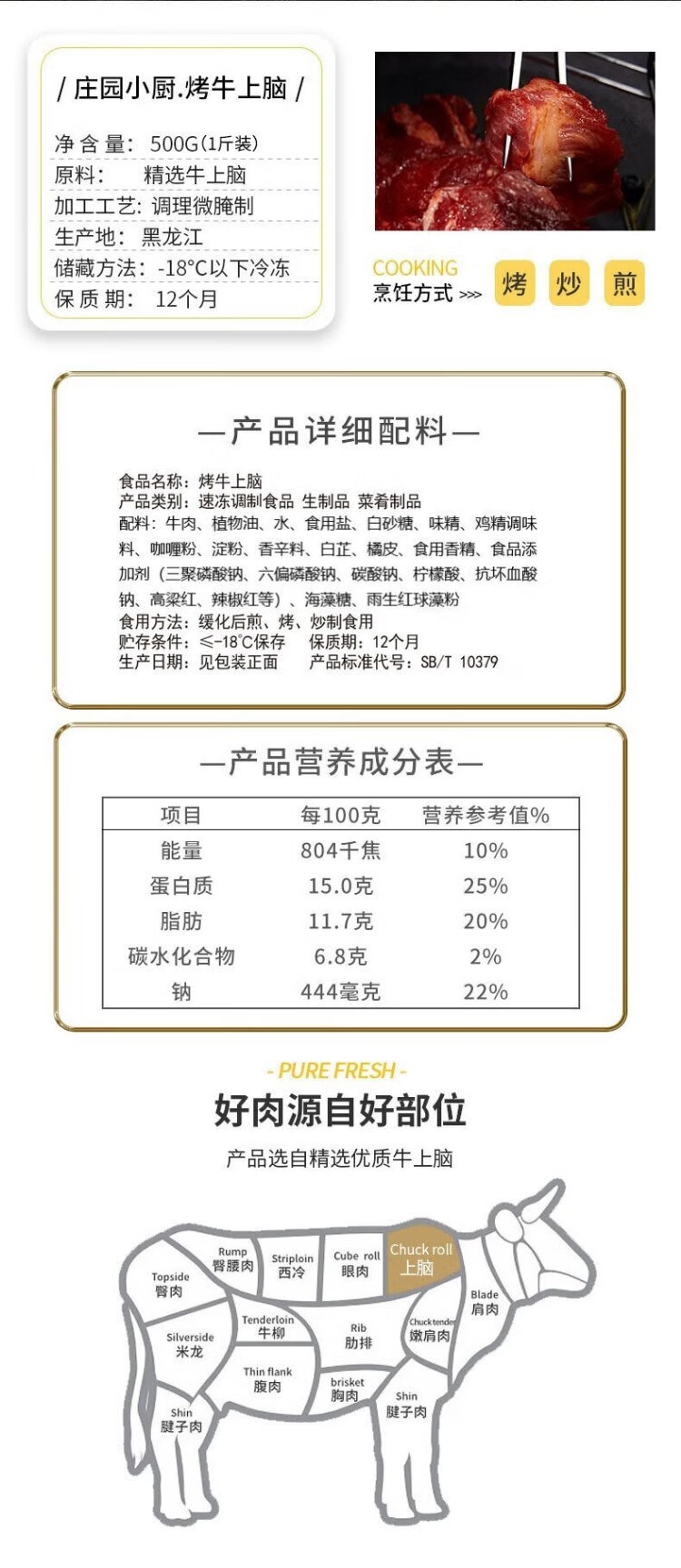 Grand Manor Roast Beef Upper Brain 1Jin Jin equals 0.5kg Fresh marinated beef barbecue barbecue ingredients fine-tuned semi-finished product