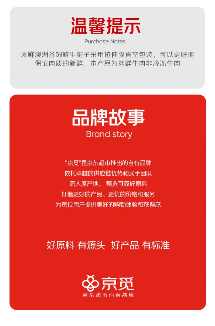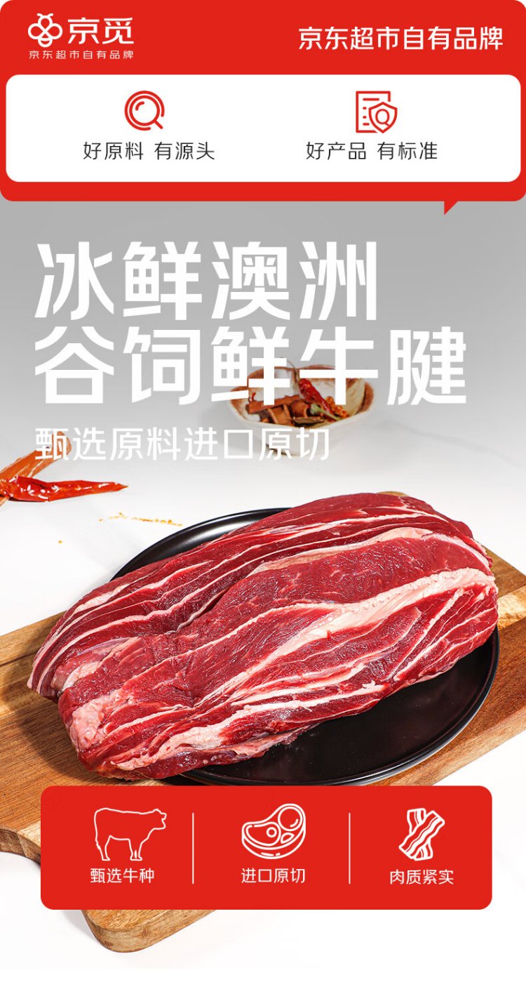 鲜京采【冰鲜牛肉】澳洲谷饲牛腱子2斤 原切生鲜鲜肉 京东自有品牌