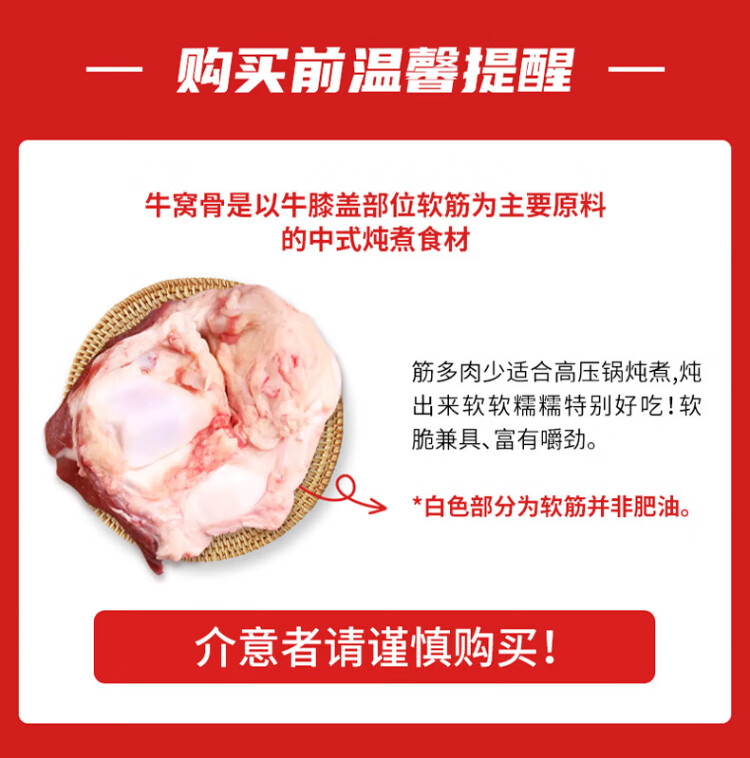 HUADONG Australian Teys Original Cut Beef Bone Bones 4Jin Jin entsprechend 0,5 kg (einschließlich Saucenpaket) Gefrorene gedünstete Rindfleisch-Knieknochen Frisches Rindfleisch
