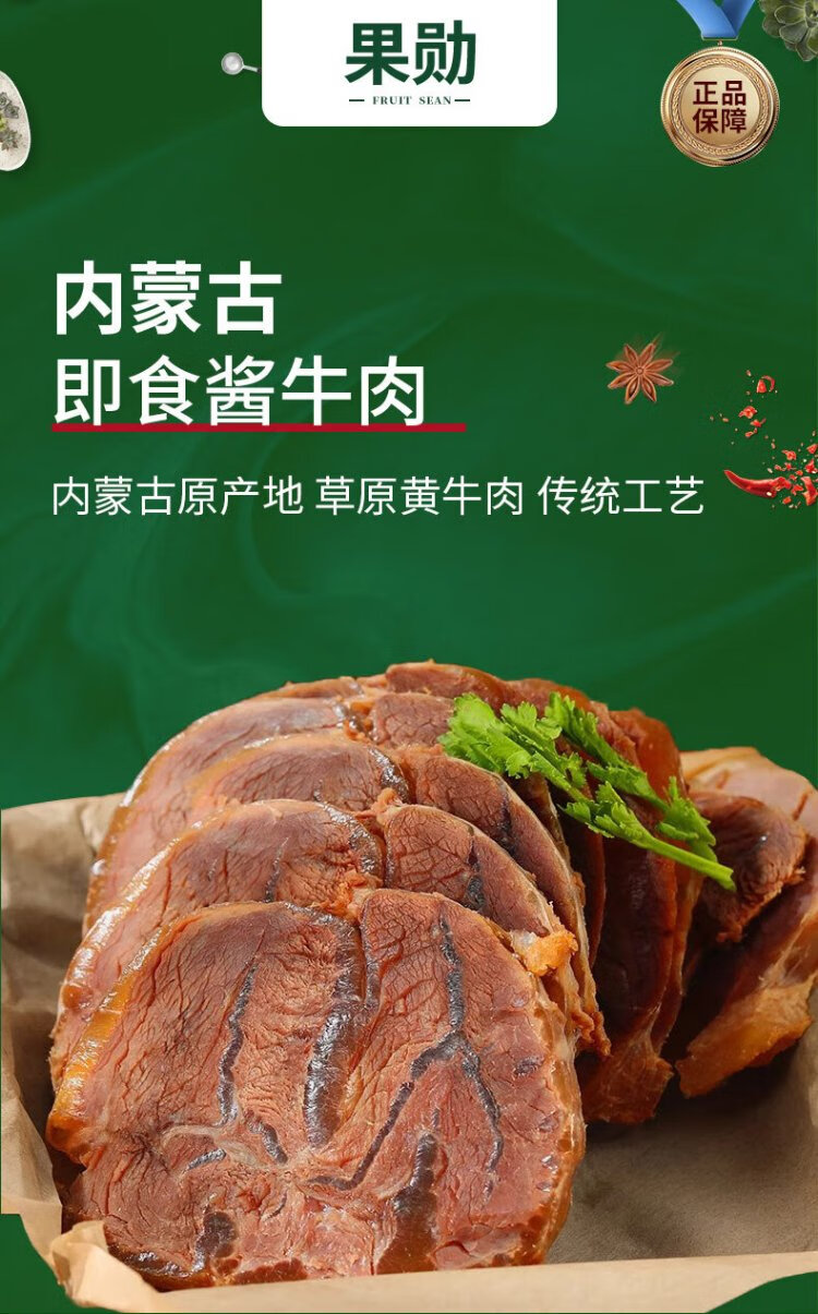 Guoxun Inner Mongolia Sauce Beef Net Weight 2Jin Jin is equal to 0.5kg Ready-to-Eat Fitness Delicatessen Vacuum Braised Beef Cooked Beef