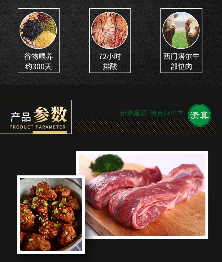 伊赛国产谷饲黄牛 原切去骨牛肋条2斤 清真生鲜牛肉烧烤炖煮