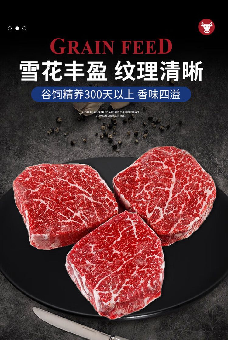 澳牛日记 澳洲和牛谷饲M5原切牛排 净重2斤 雪花牛排生鲜牛扒冷冻
