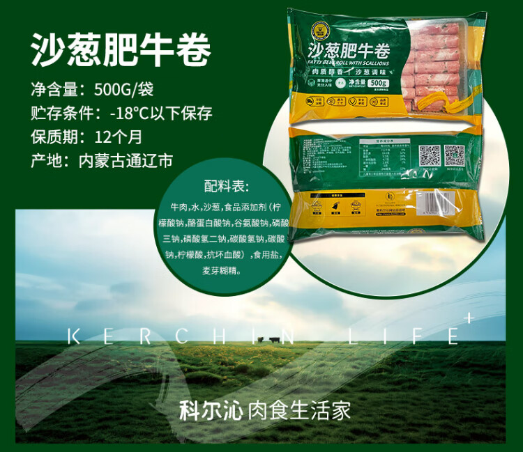 科尔沁 内蒙古特产国产沙葱肥牛卷1斤 牛肉卷涮火锅食材清真牛肉生鲜
