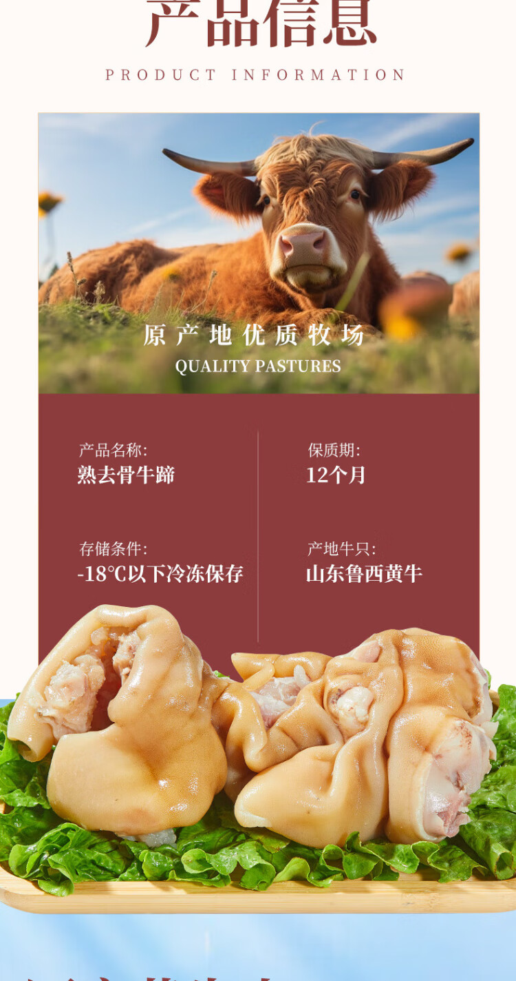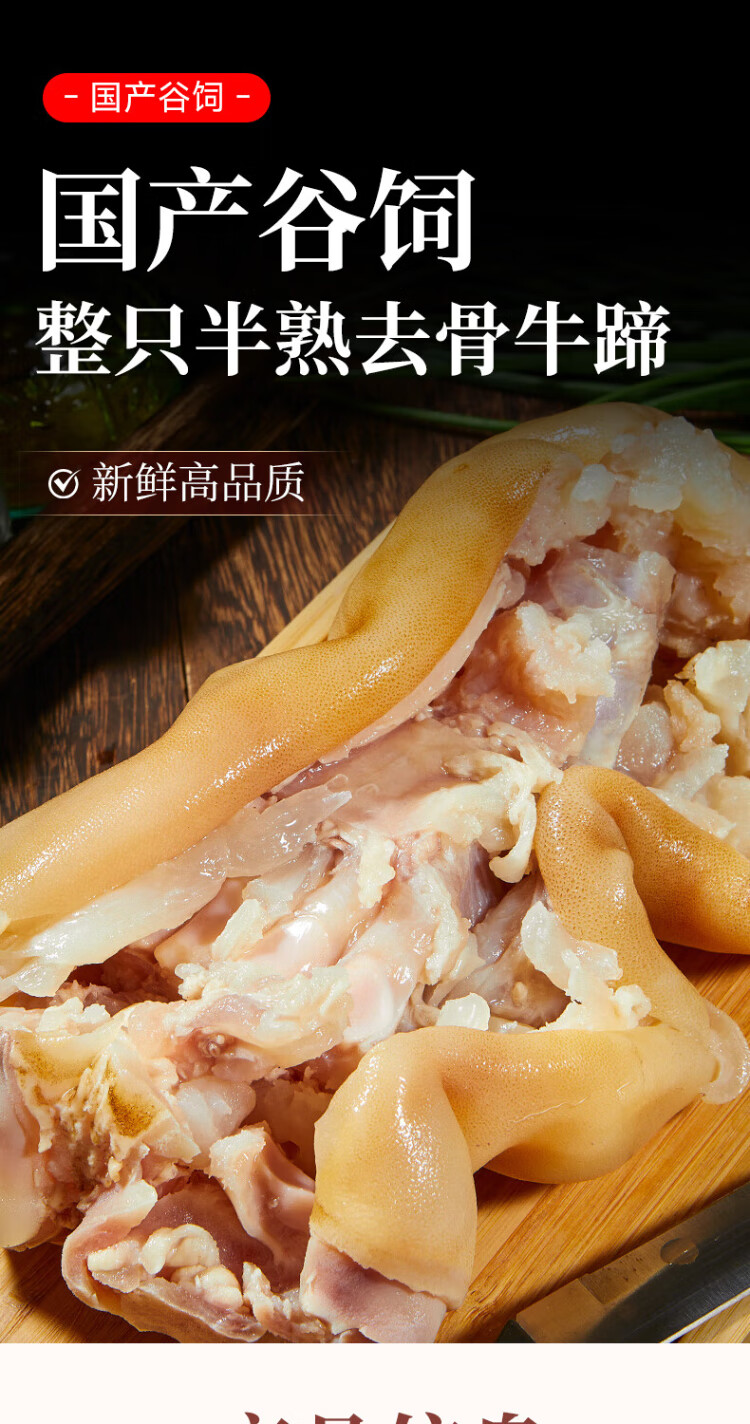 Muwu Whole Beef Domestic Boneless Beef Hoof Net Weight 3Jin Jin is equal to 0.5kg Half-cooked Whole Boneless Beef Hoof with Tendons Extra Large Fresh Beef