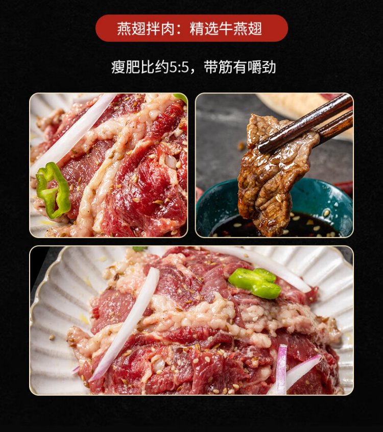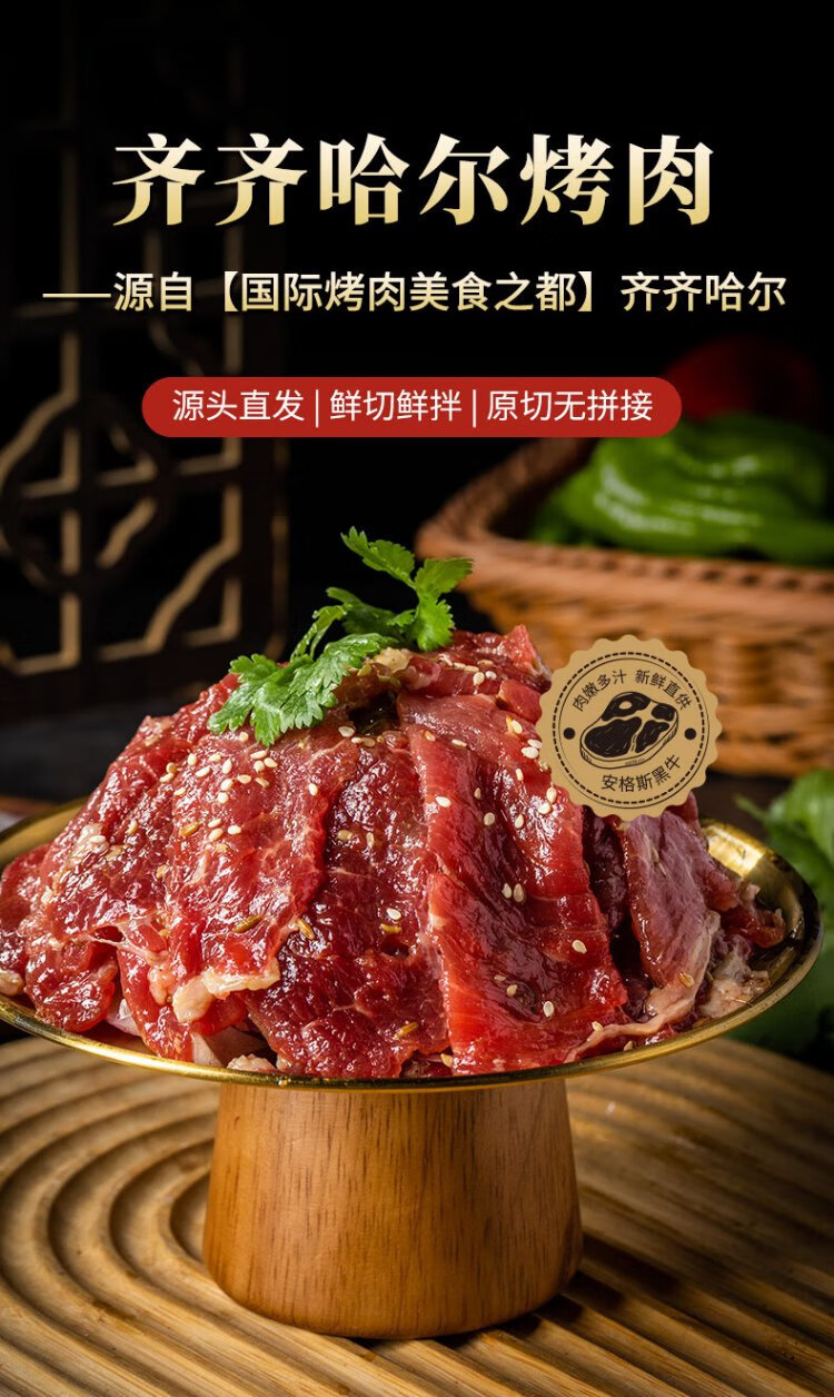 Summer Ranch Qiqihar Barbecue 2Jin Jin equal to 0.5kg Traditional 3+Swallow Wings 1 Free Dipping Domestic Angus Beef Fresh