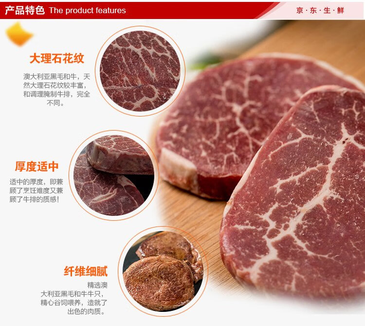 天谱乐食澳洲和牛M3/4日式原切牛排200g(2片) 谷饲360天嫩肩小米龙牛肉