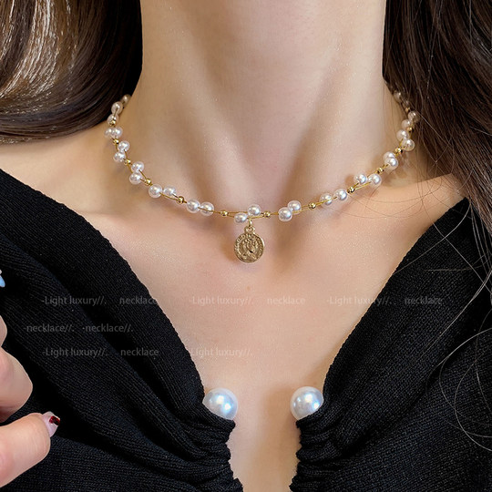 Retro avatar pearl necklace women's light luxury niche design accessories summer high-end choker clavicle chain