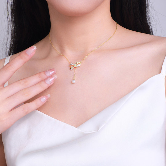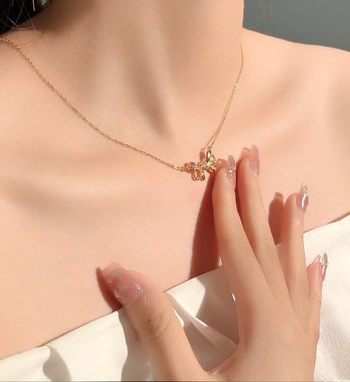 Chinese gold Zhenshang silver bow sterling silver necklace women's summer light luxury niche design sense 22 new 1693