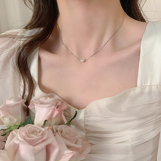 Cold style silver pendant pearl necklace light luxury niche collarbone chain female high-end sense daily versatile necklace temperament