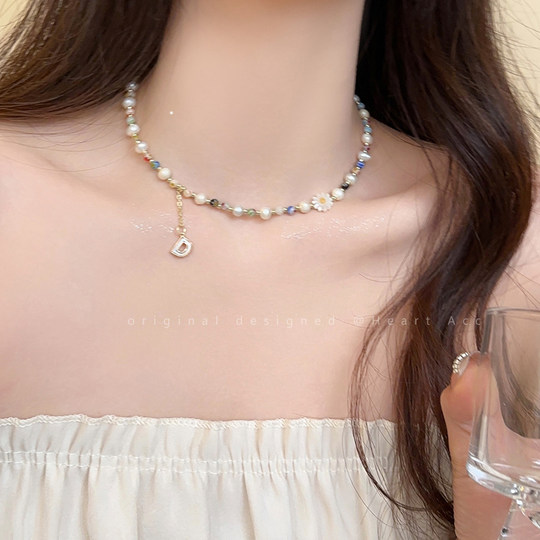 Colorful Daisy Alphabet Pearl Beaded Necklace Female 2023 New Trendy Spring and Summer Necklace Mori Sweet Clavicle Chain