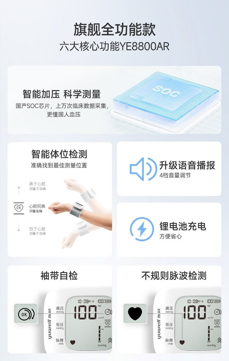 Yuwell's industry-best-selling wrist-type electronic blood pressure monitor 8800AR home blood pressure meter medical high-precision blood pressure instrument for the elderly