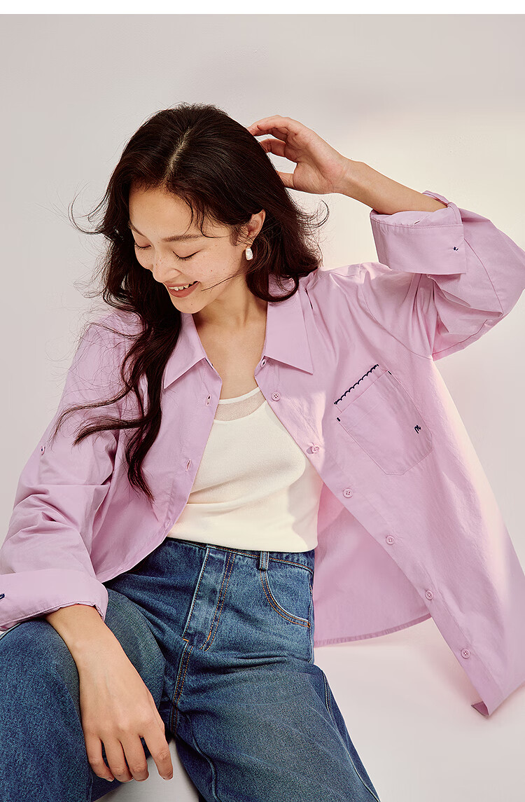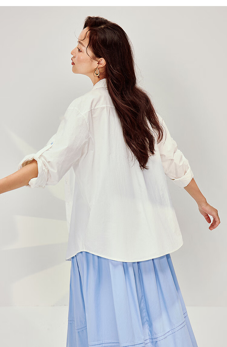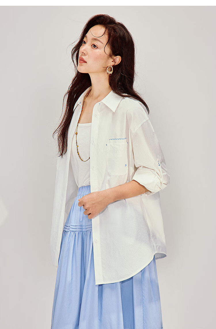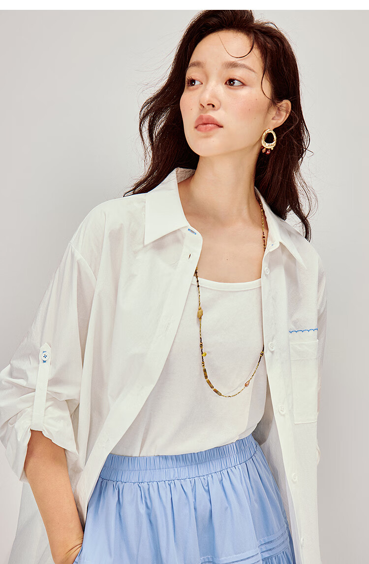 INMAN pure cotton simple commuting letter embroidered shirt 2026 spring women's new long-sleeved shirt Pearl White XL