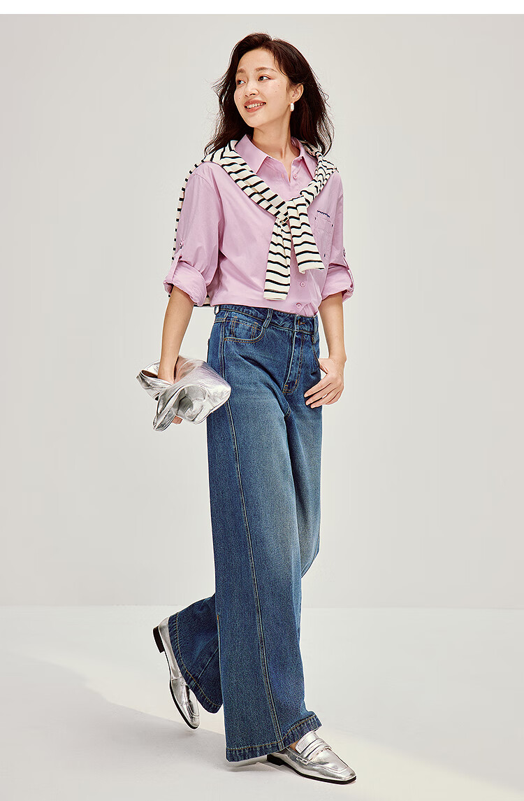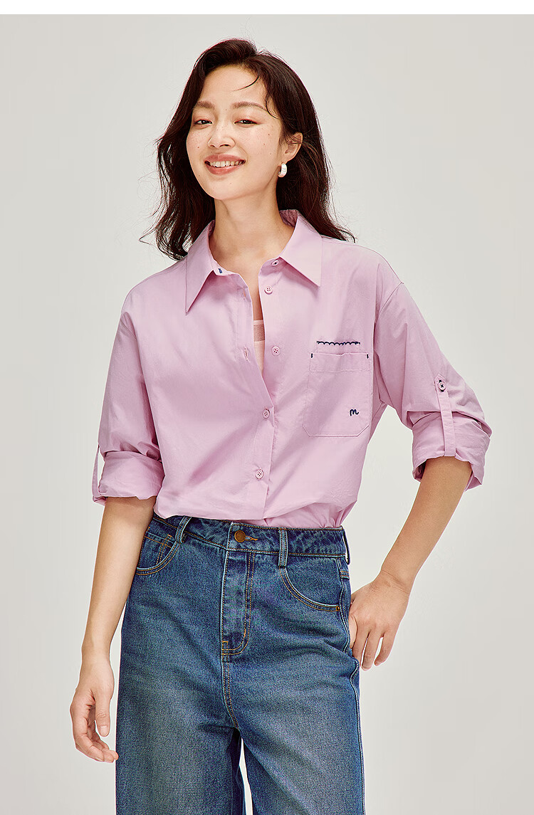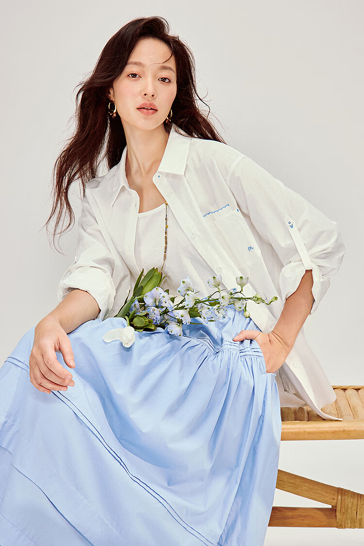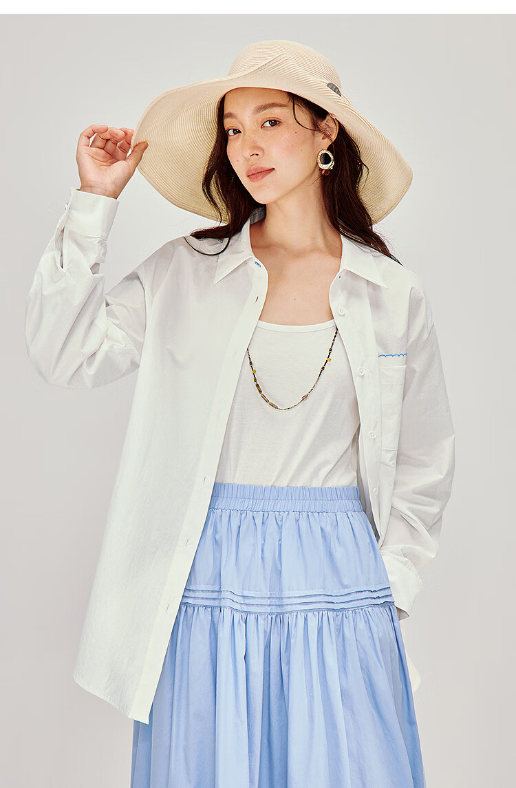 INMAN pure cotton simple commuting letter embroidered shirt 2026 spring women's new long-sleeved shirt Pearl White XL