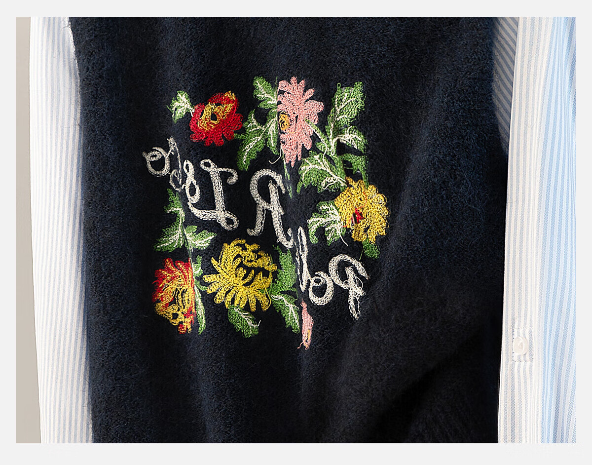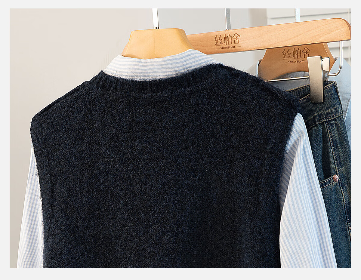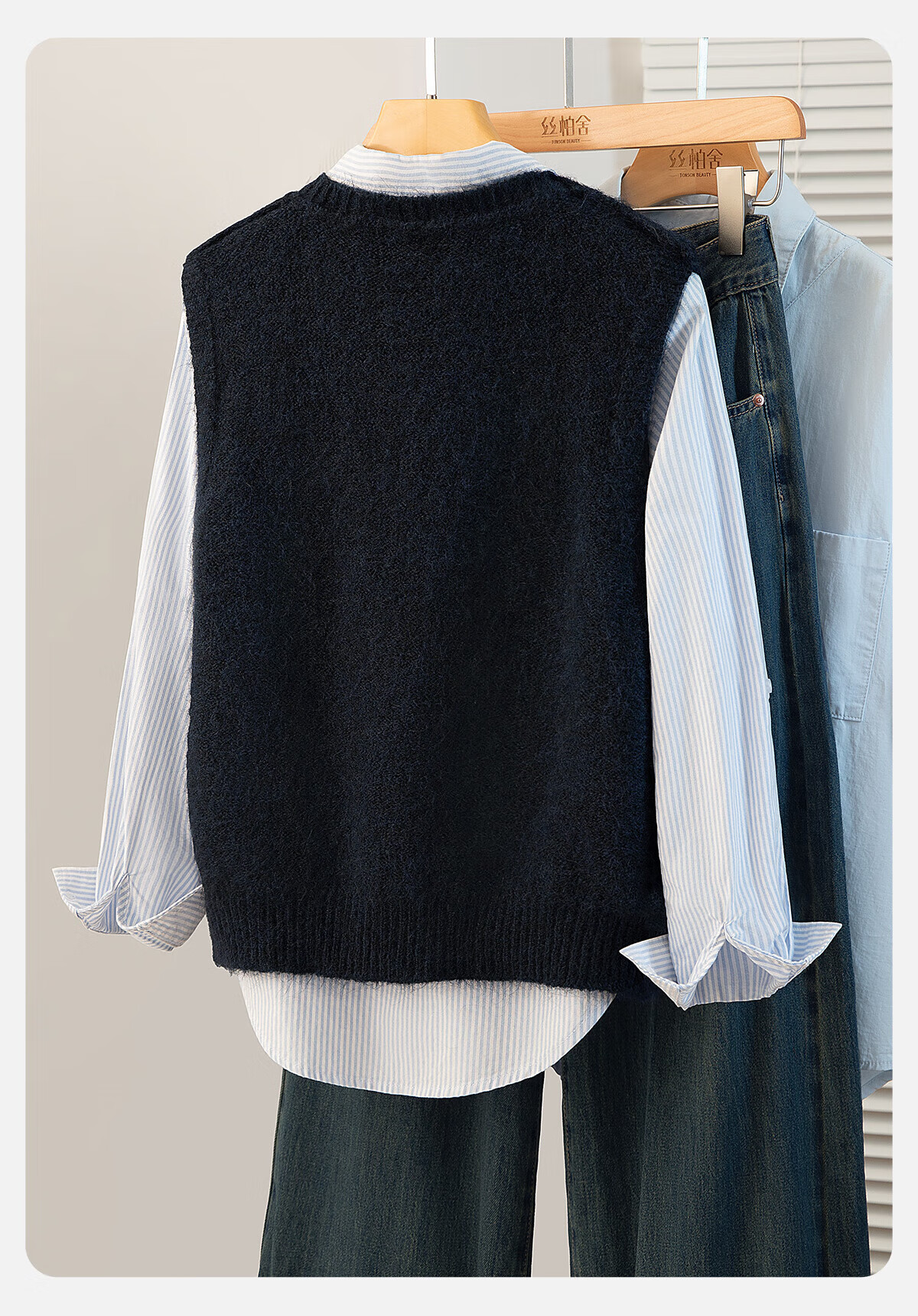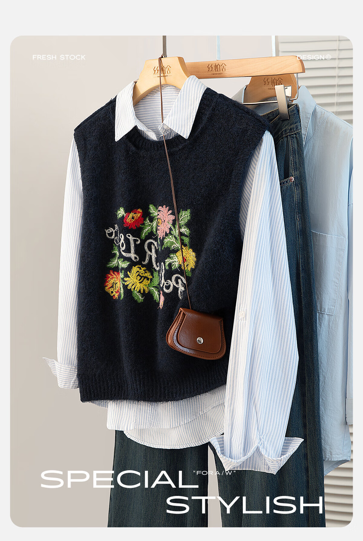 丝柏舍圆领绣花叠穿针织马夹女2025秋装新款时尚气质套头马甲