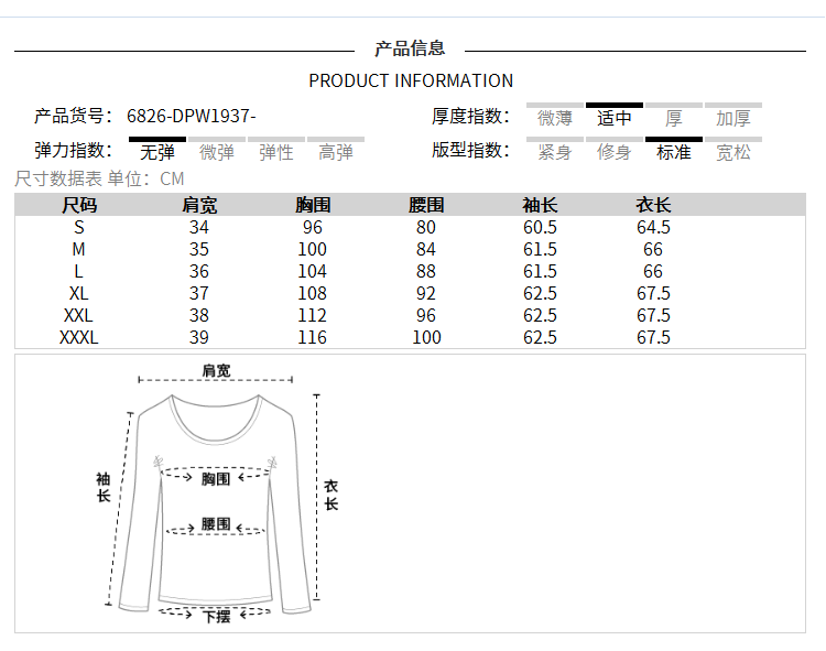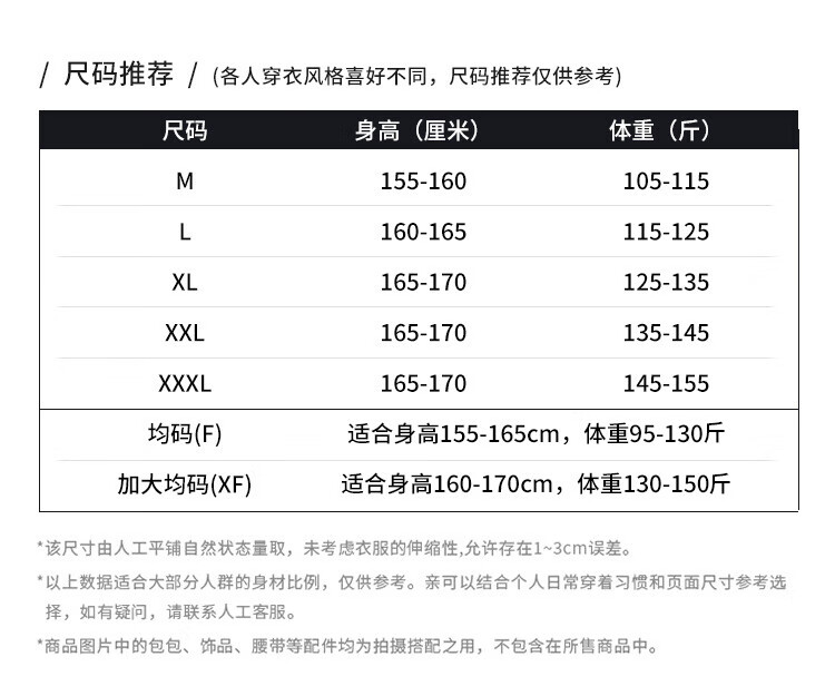 China (cm) 160-165/84-86 165-170 / 88-90 167-172 / 92-96 168-173 / 98-102 170-176 / 106-110